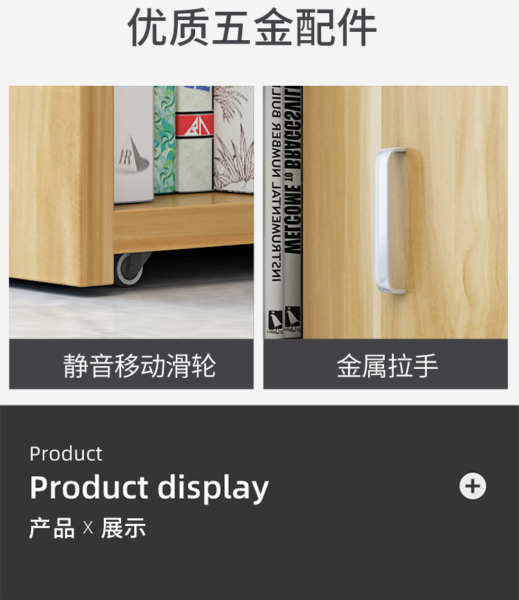 窄书柜抽拉移动书橱带门隐藏防尘储物收纳柜推拉隐形侧拉式小柜子
