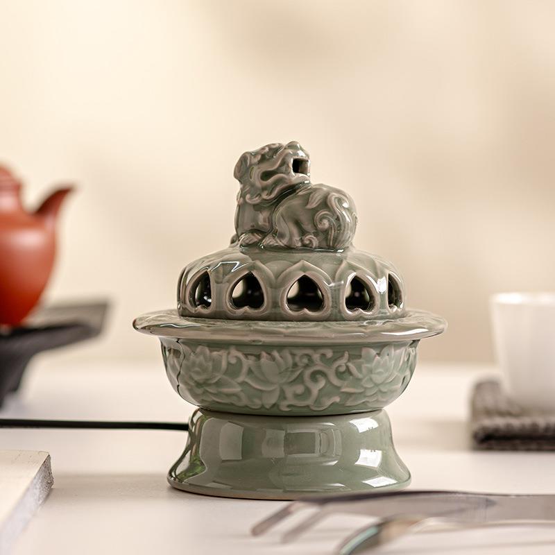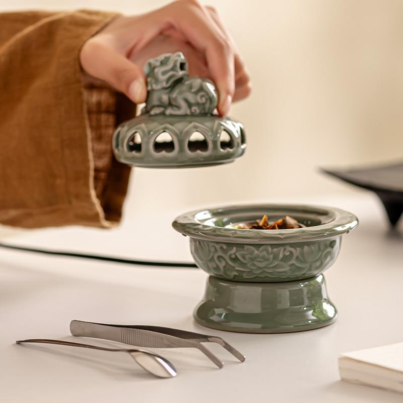 青瓷狻猊电子香薰定时控温室内夜用香炉香粉香丸香炉茶桌熏香炉