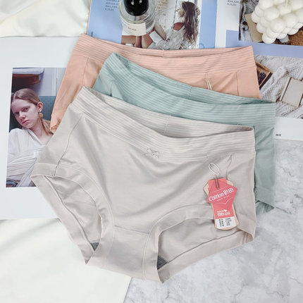 彩田内裤女莫代尔棉中高腰大码包臀抗菌裆条纹女士正品平角裤3条