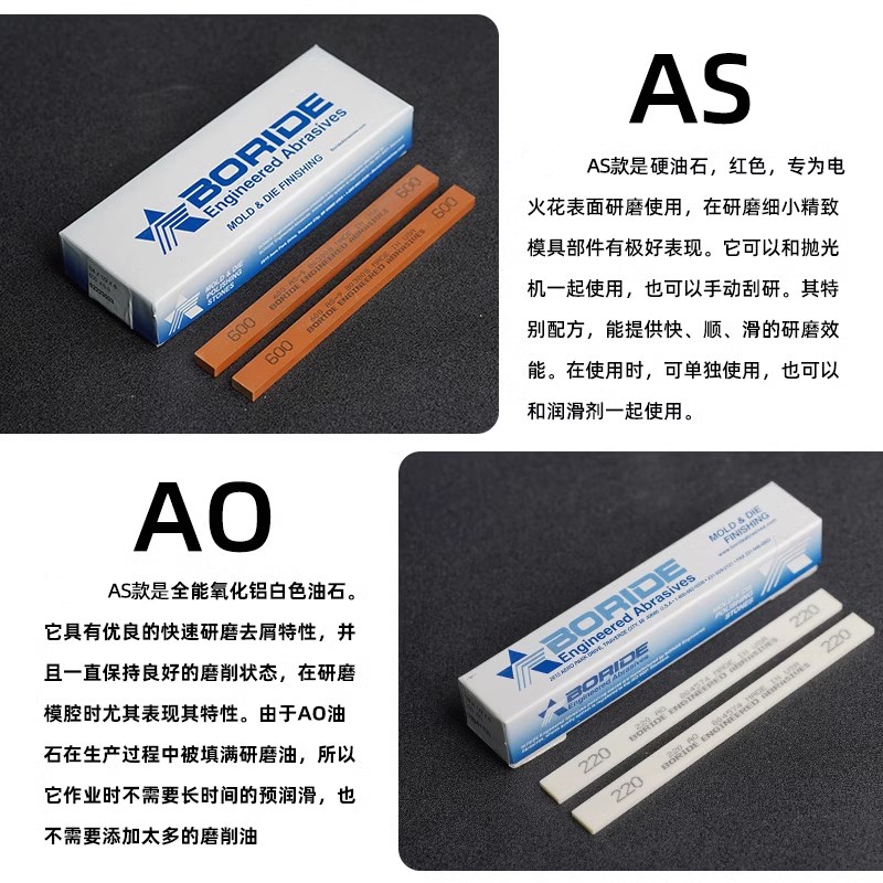 美国必宝油石1/8*1/4模具抛光打磨AO白色/AS9红150#-600#BORIDE