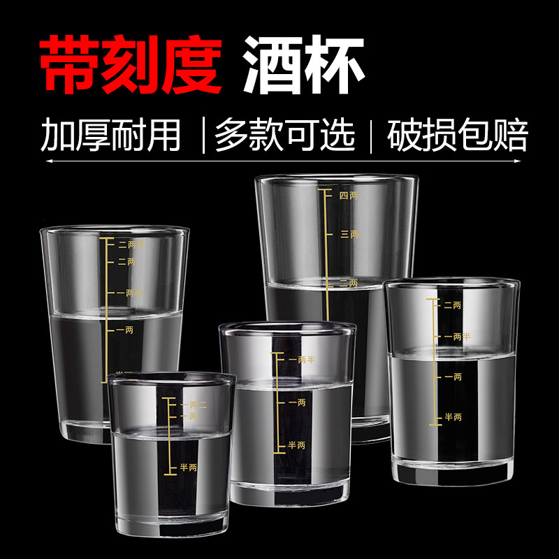 钢化玻璃白酒杯2两带刻度酒杯家用分酒具高档洋酒烈酒啤酒杯二两
