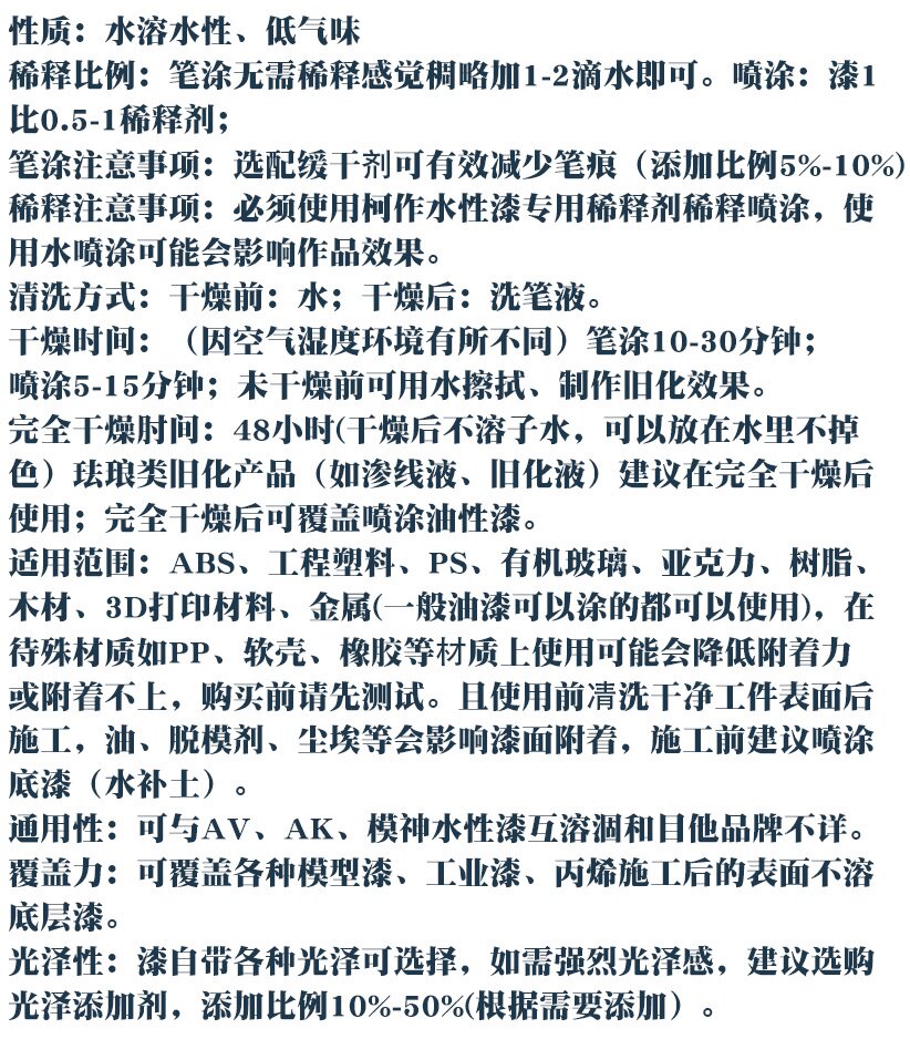 柯作高达模型AV水性漆AK上色颜料金属漆西班牙笔涂漆水补土手涂漆