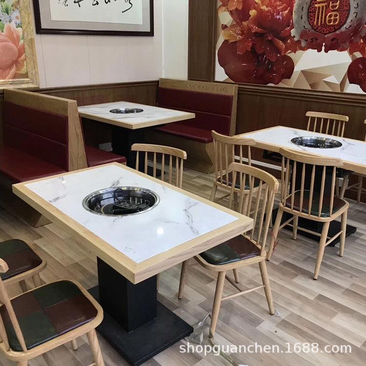 商用火锅店桌椅餐厅饭店实木包边大理石主题餐饮店成套餐桌椅家具