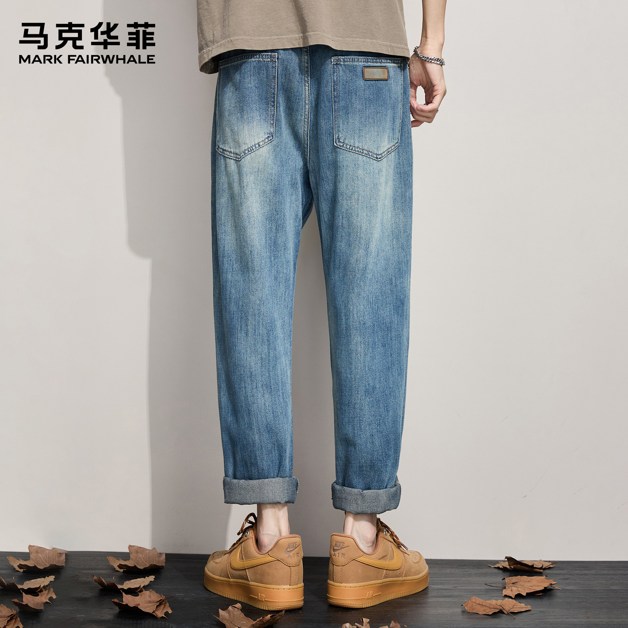 马克华菲秋冬新款锥形牛仔裤男潮牌美式复古青少年宽松休闲长裤子