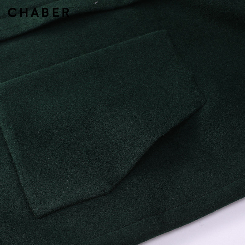 chaber巧帛商场同款冬季新品纯色外套女连帽长袖羊毛呢大衣124914