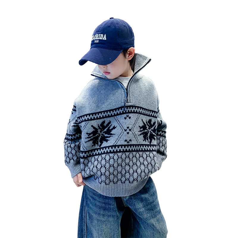 男大童冬季高领半拉链加厚毛衣2025新款儿童男孩秋冬装韩系针织衫
