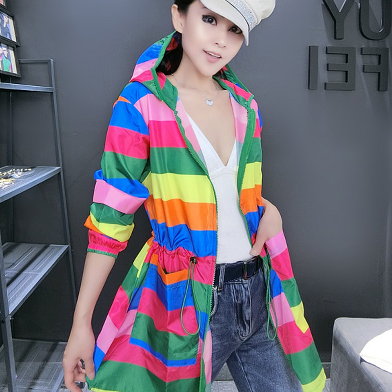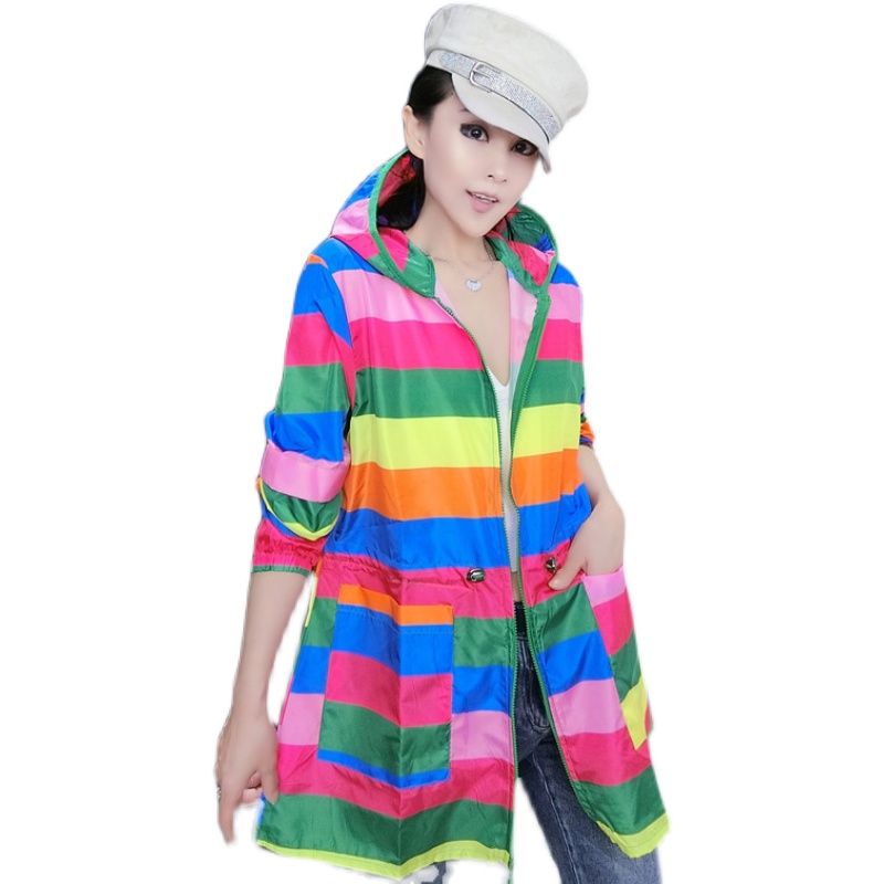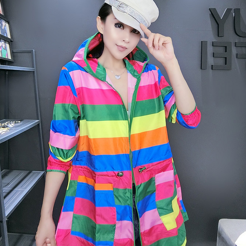 韩版中长款拼色短外套时尚防晒服