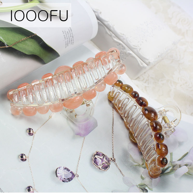 东大门渐变亚克力树脂大号抓夹发卡韩国进口圆方珠透明色马尾发抓
