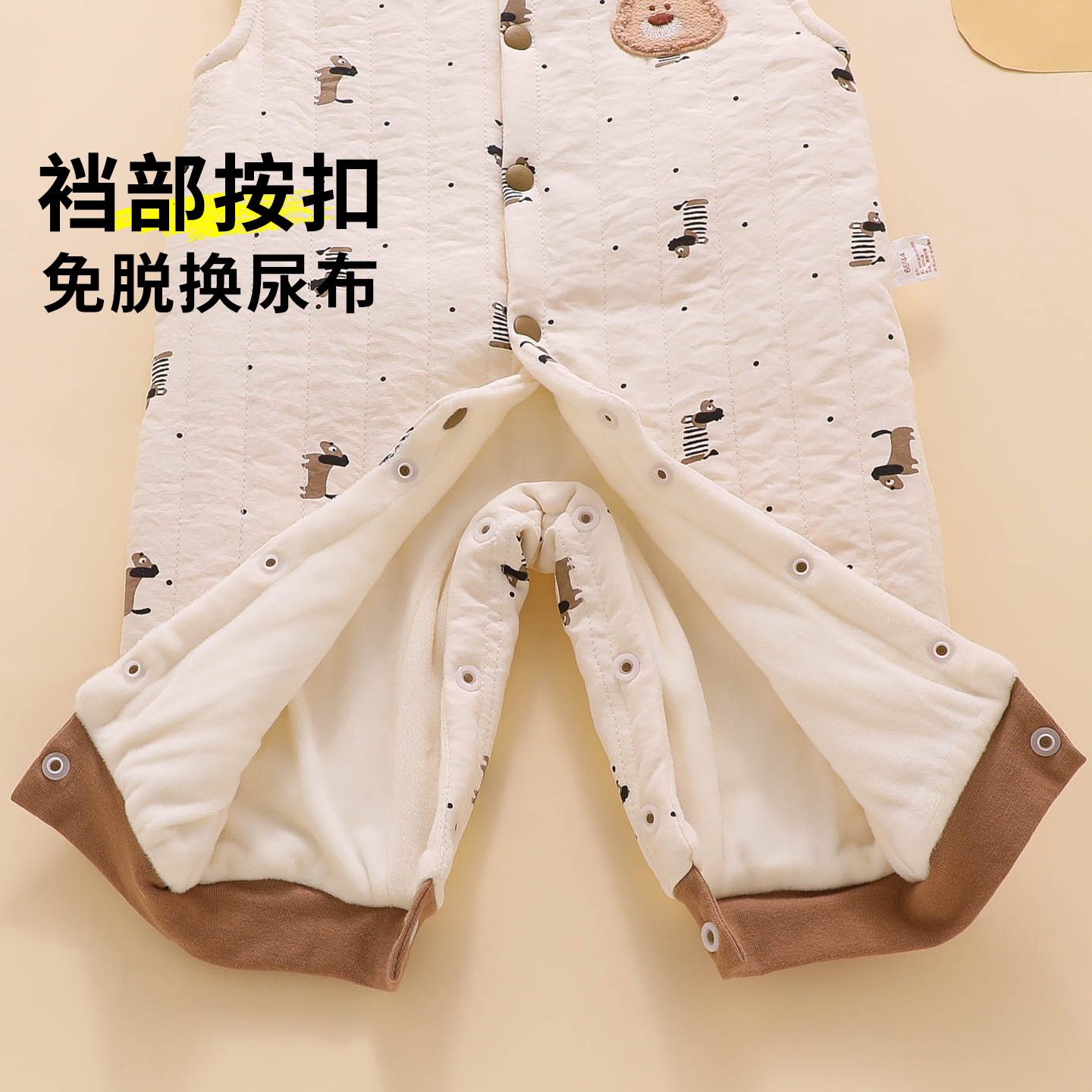 婴儿背带裤小月龄裆部按扣女宝宝男超洋气夹棉裤子秋冬季加绒外穿