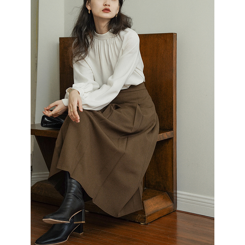popchrio◆加厚百搭复古百褶法式基础高腰半身裙宽松a字裙子女秋
