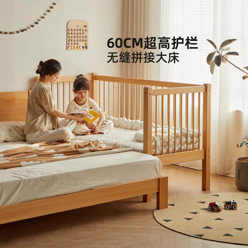 金多喜拼接床婴儿床加高护栏儿童床进口榉木加宽床宝宝床拼接大床