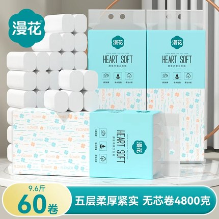 漫花无芯卷筒纸卫生纸卷纸家用实惠装整箱纸巾卫生间厕所厕纸手纸