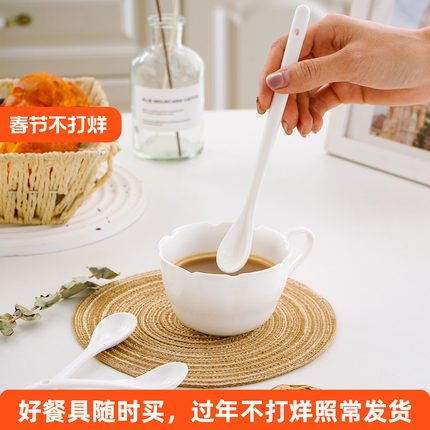骨瓷纯白家用咖啡勺长柄搅拌勺4个商用调料勺陶瓷迷你小勺蜂蜜勺