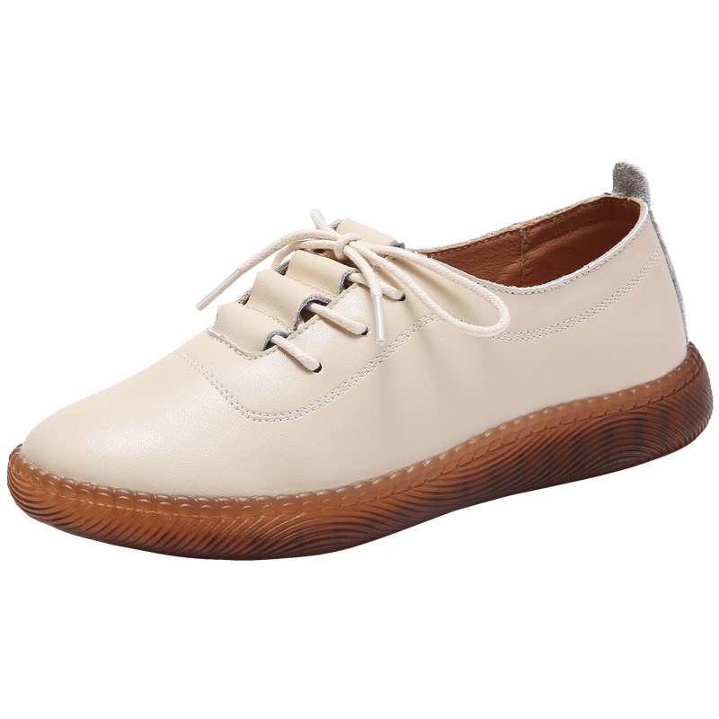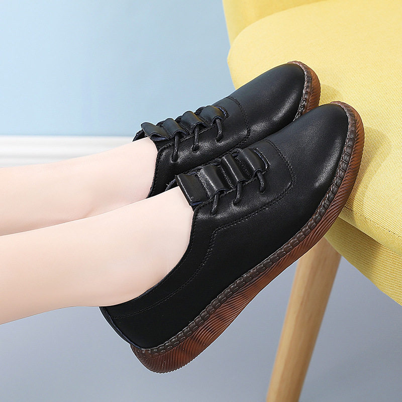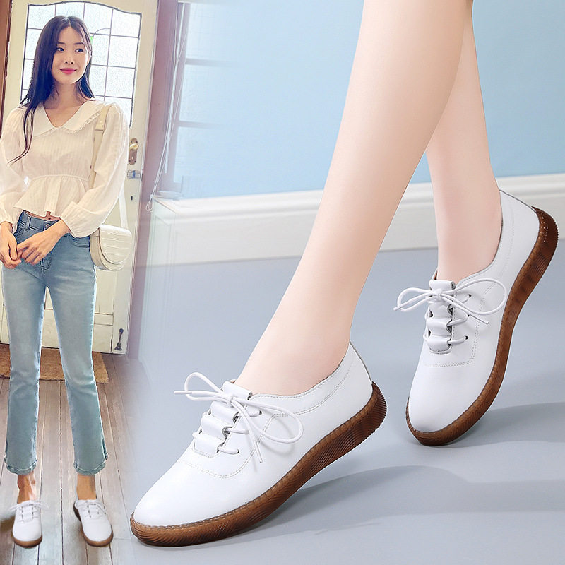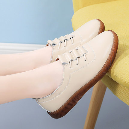 新款小皮鞋女软底平底小白鞋女皮面防滑休闲鞋百搭透气牛筋底女鞋