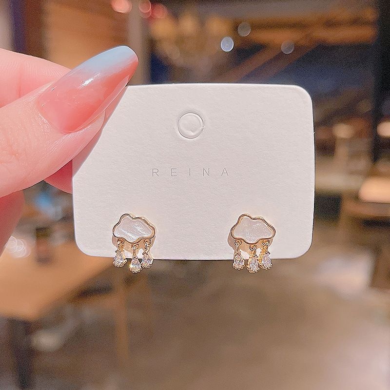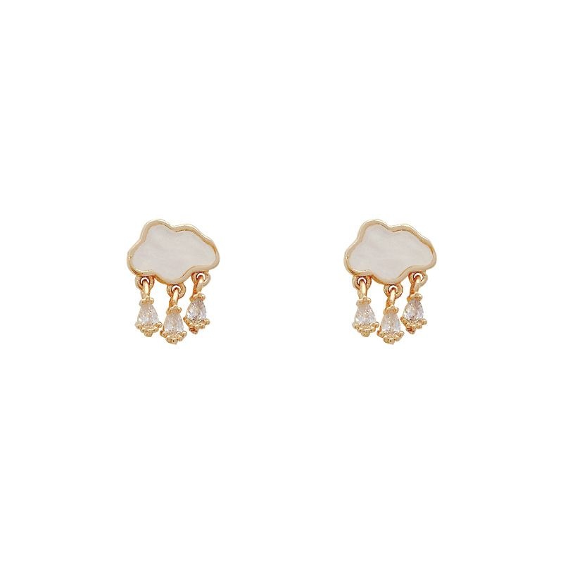 S925银针微镶锆石小云朵耳钉女小清新韩国东大门新款气质简约耳环