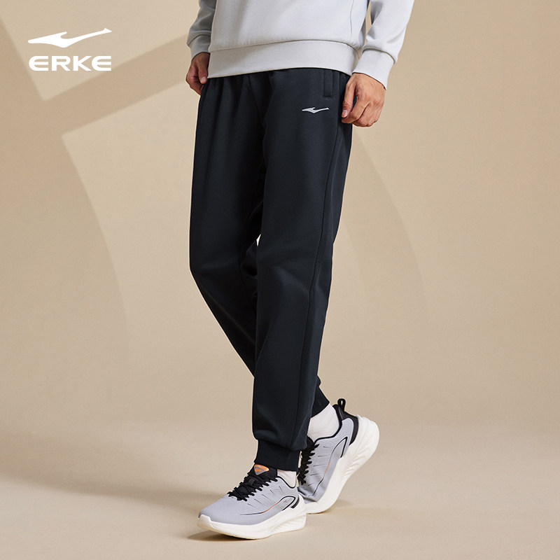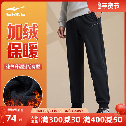 鸿星尔克运动裤男士冬季卫裤休闲长裤男加绒加厚黑色裤子爸爸男裤