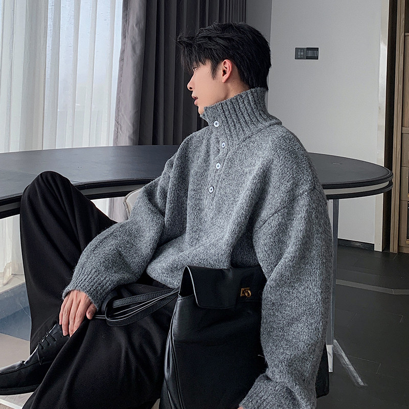 Hualun男士高领毛衣冬季加厚针织衫男韩系宽松潮牌打底衫上衣毛衫