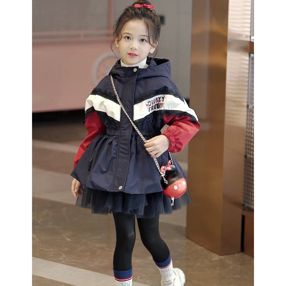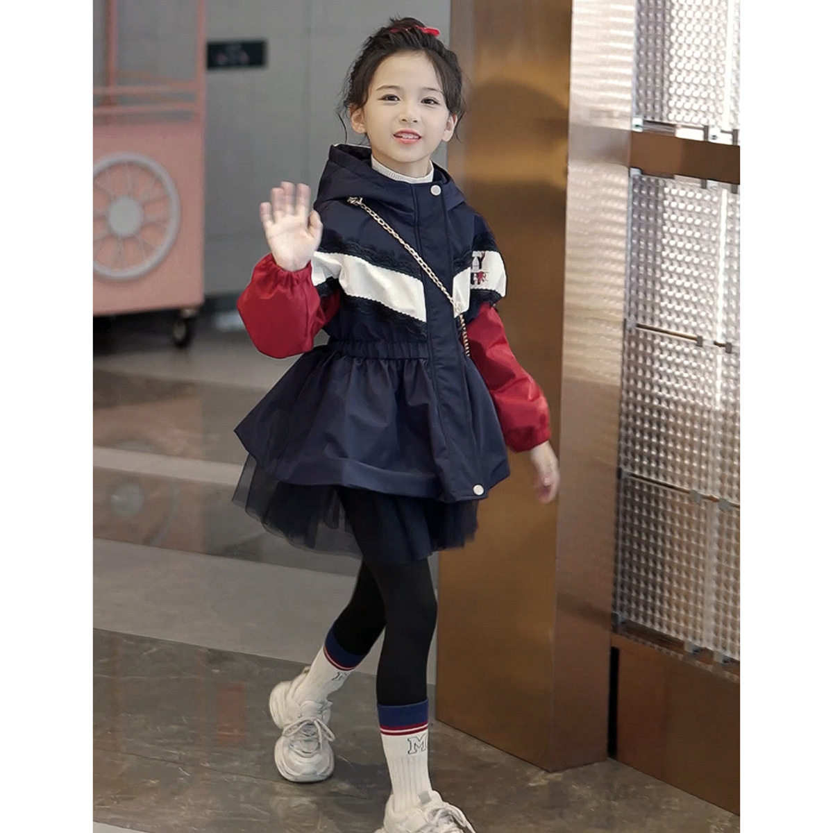 女童中长款棉服冬季2024新款公主拼接网纱蓬蓬裙儿童棉衣外套冬装
