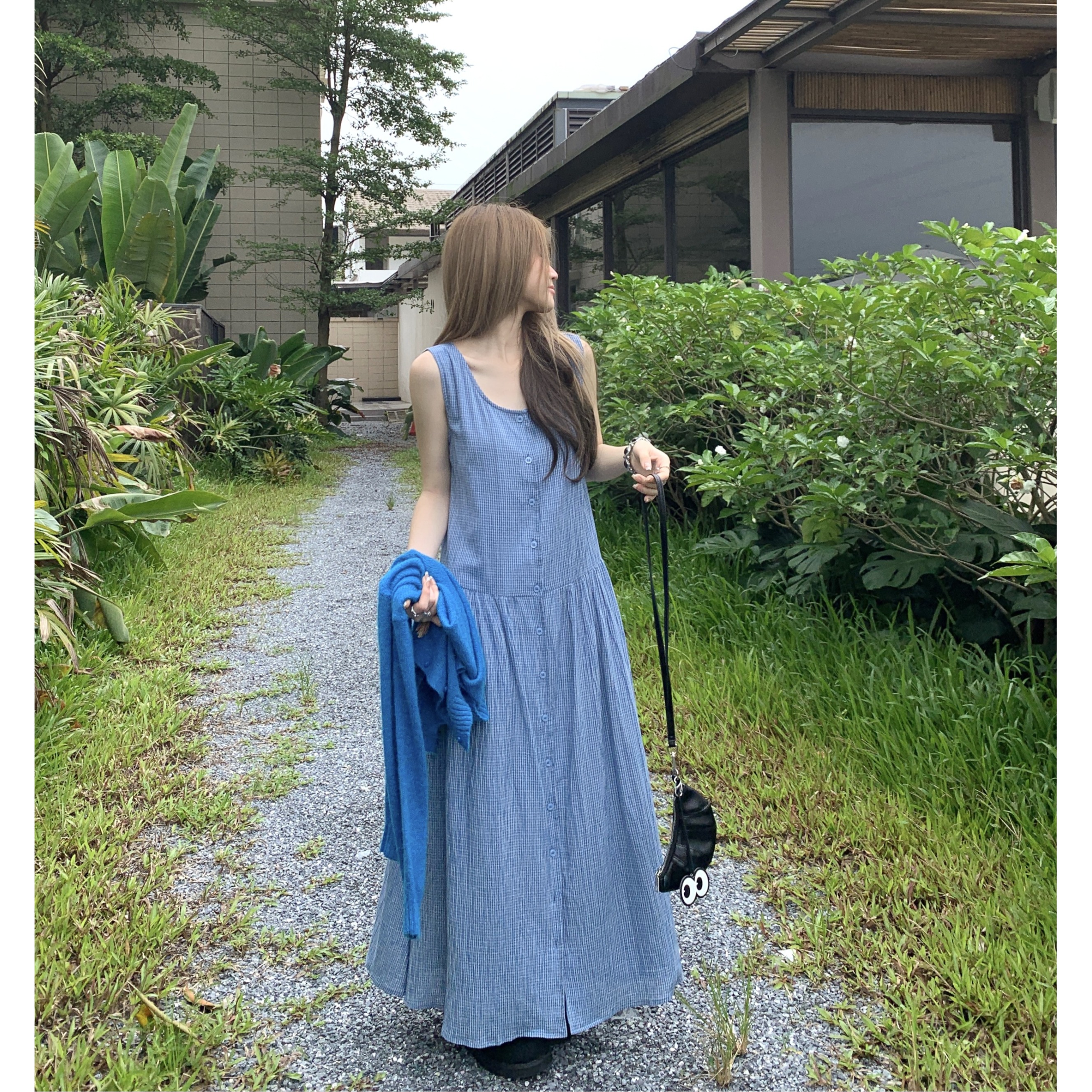 大码胖mm韩版复古格纹无袖背心连衣裙女夏新款显瘦小个子气质长裙