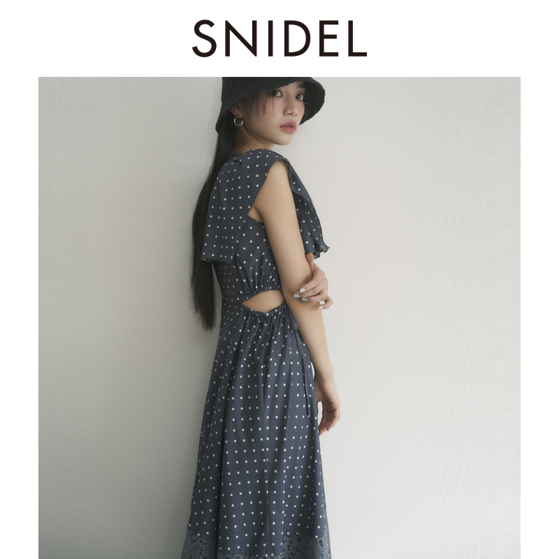 SNIDEL秋冬款蕾丝拼接露腰V领波点荷叶边连衣裙SWFO244005
