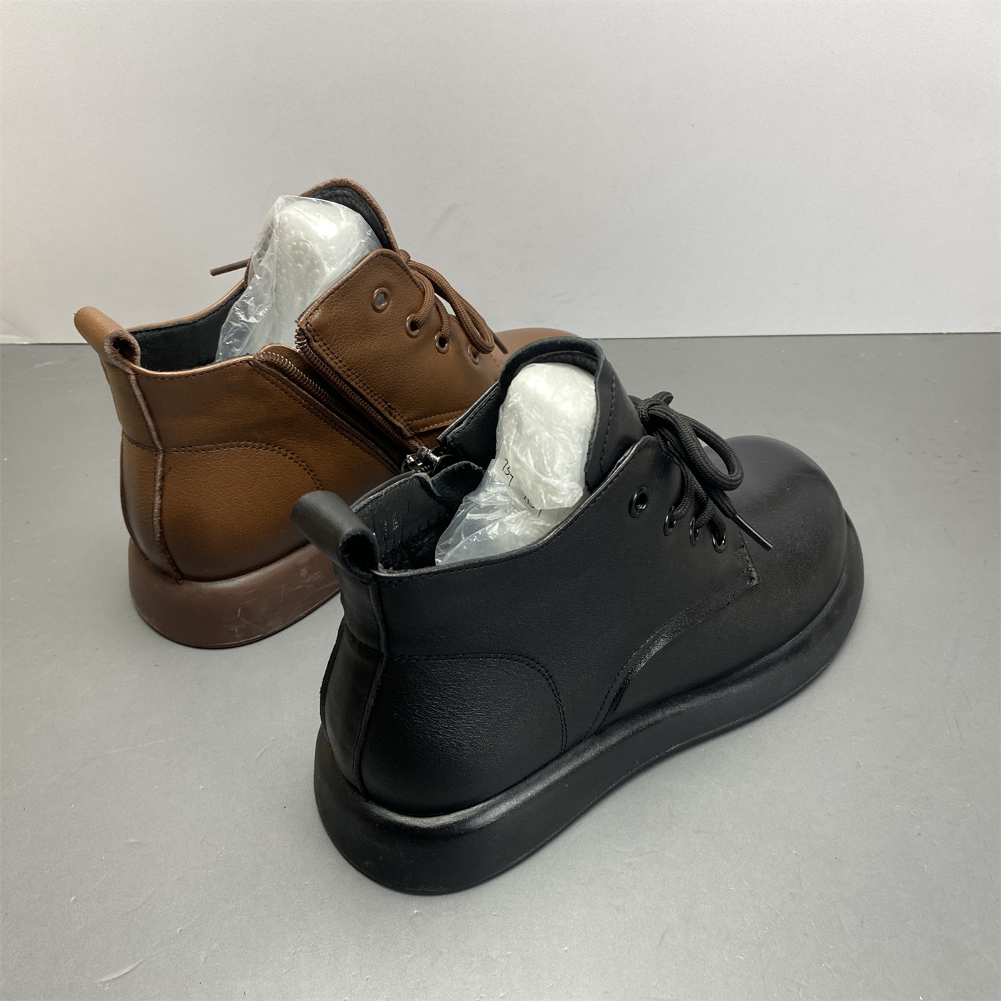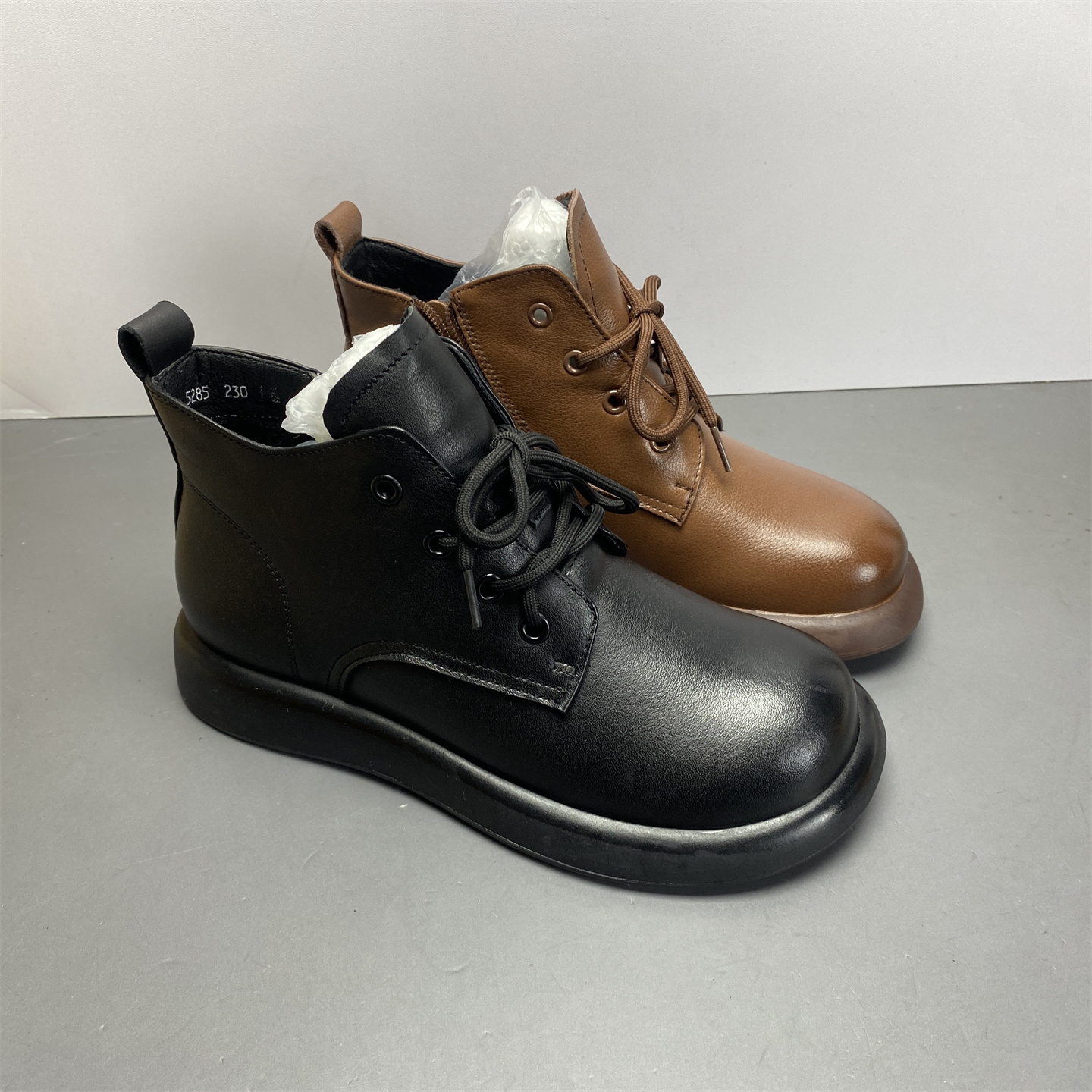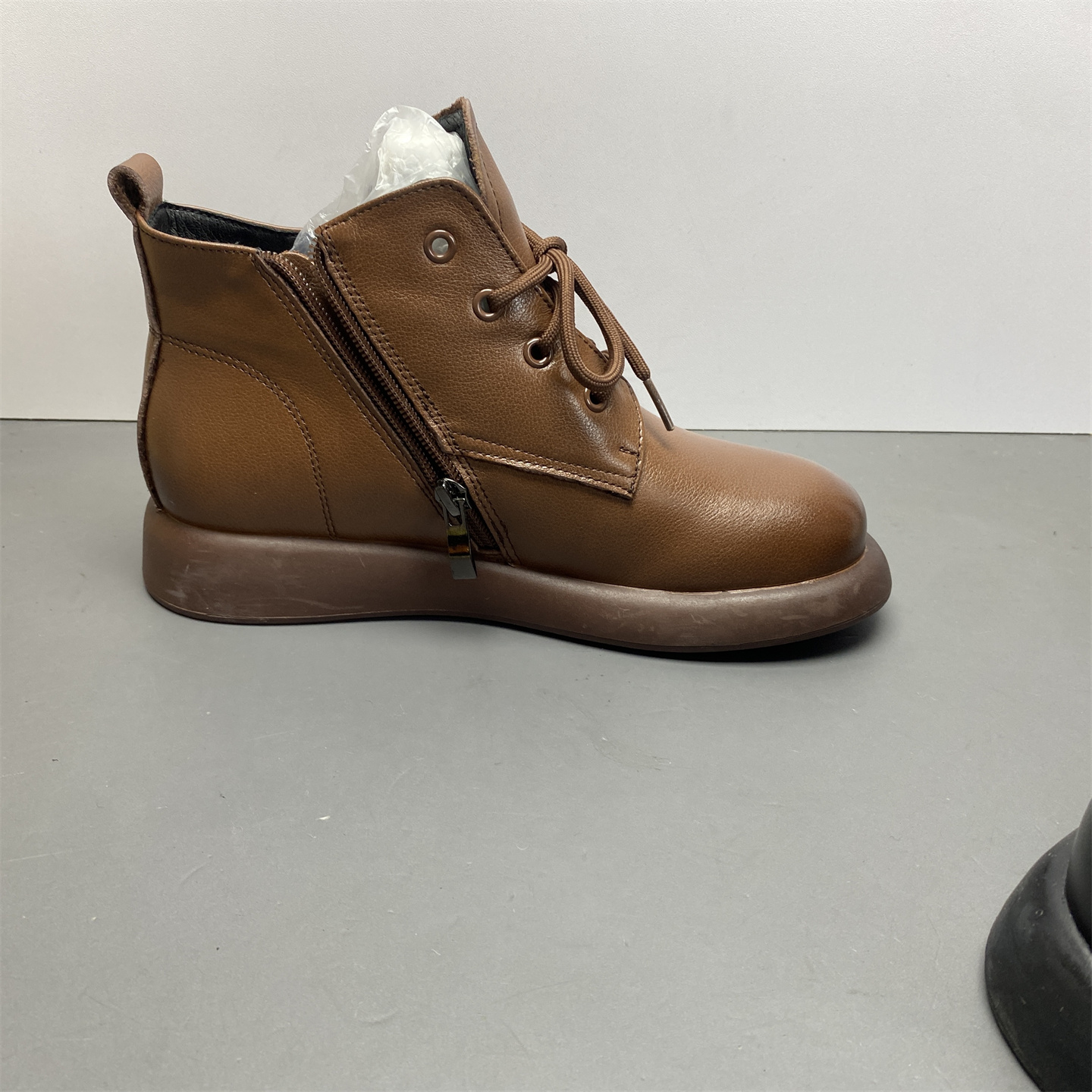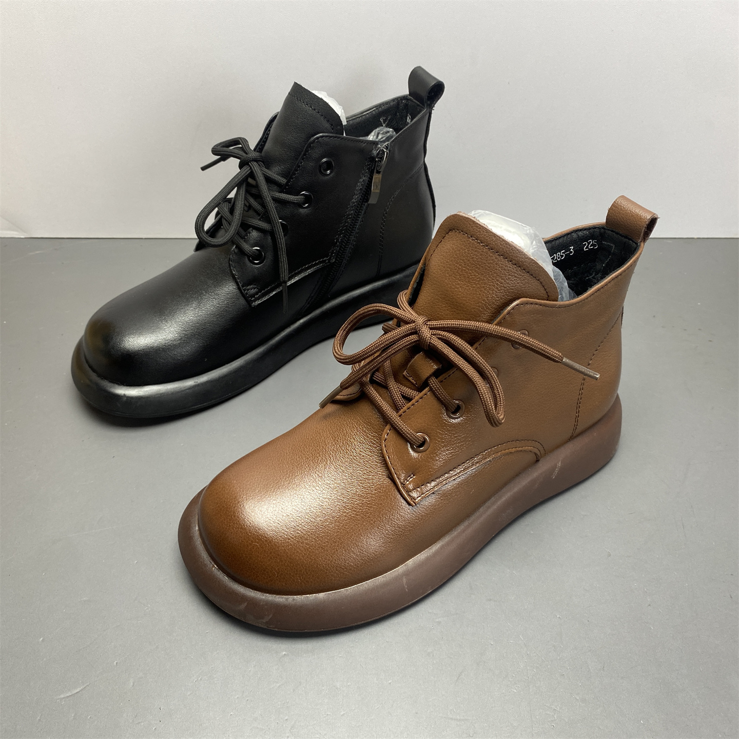 品牌断码真皮靴子女2025新款冬款牛皮短靴圆头低跟加厚保暖马丁靴