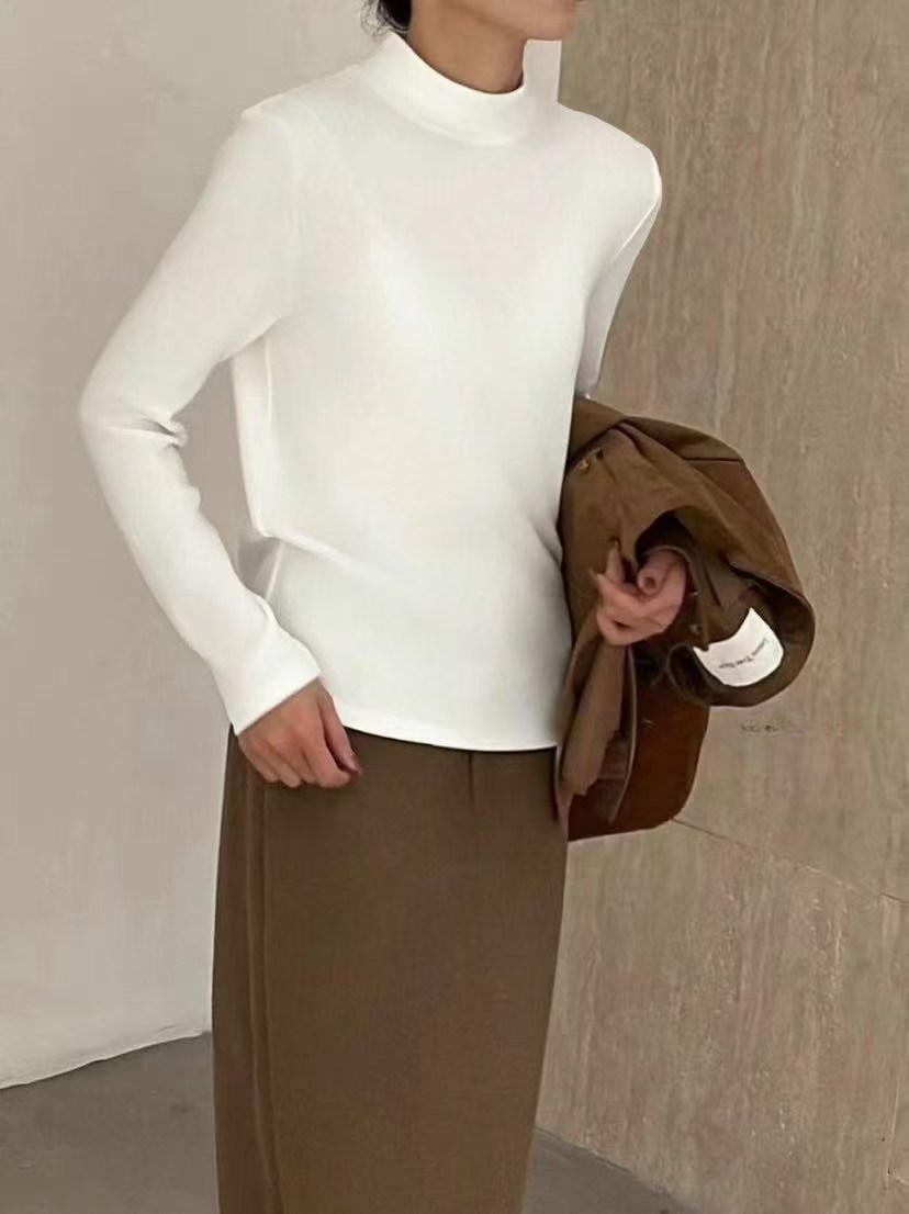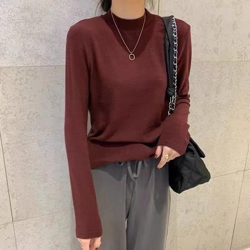 岳岳家102冬季新款立领长袖加绒纯色显瘦韩版打底衫上衣女t恤2025