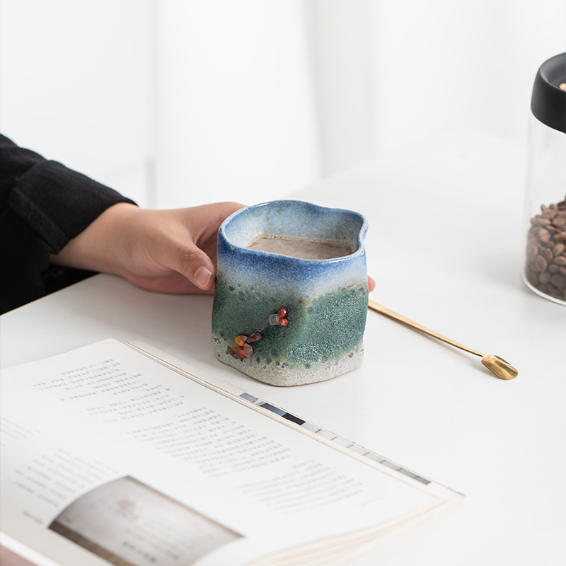 小清新陶瓷异型杯马克杯小众复古粗陶水杯日式无把手柄创意咖啡杯
