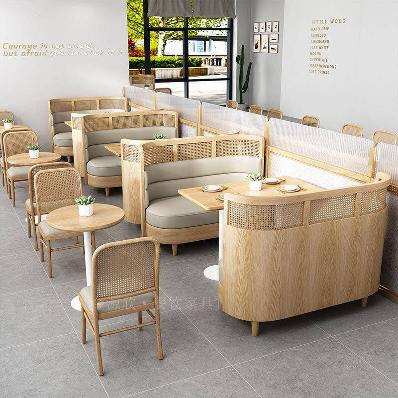 主题西餐厅编藤卡座沙发休闲清吧酒吧咖啡厅甜品店奶茶店桌椅组合