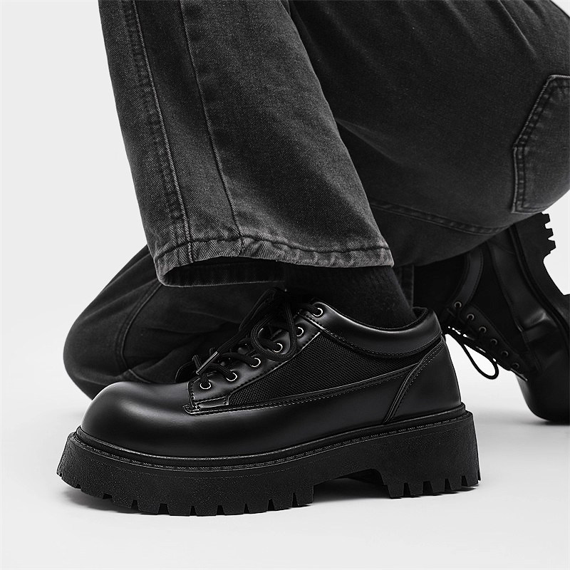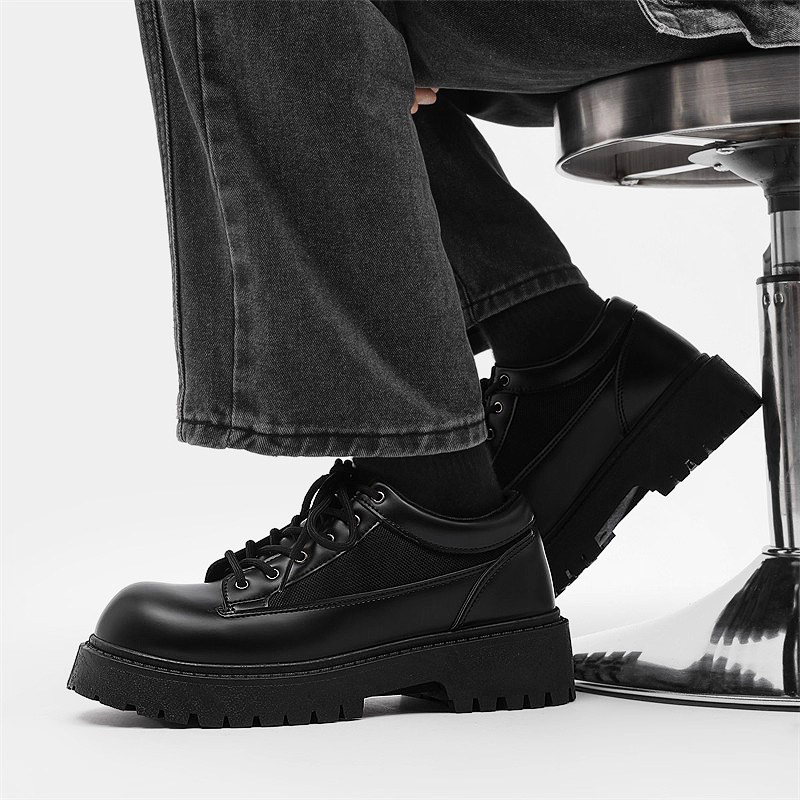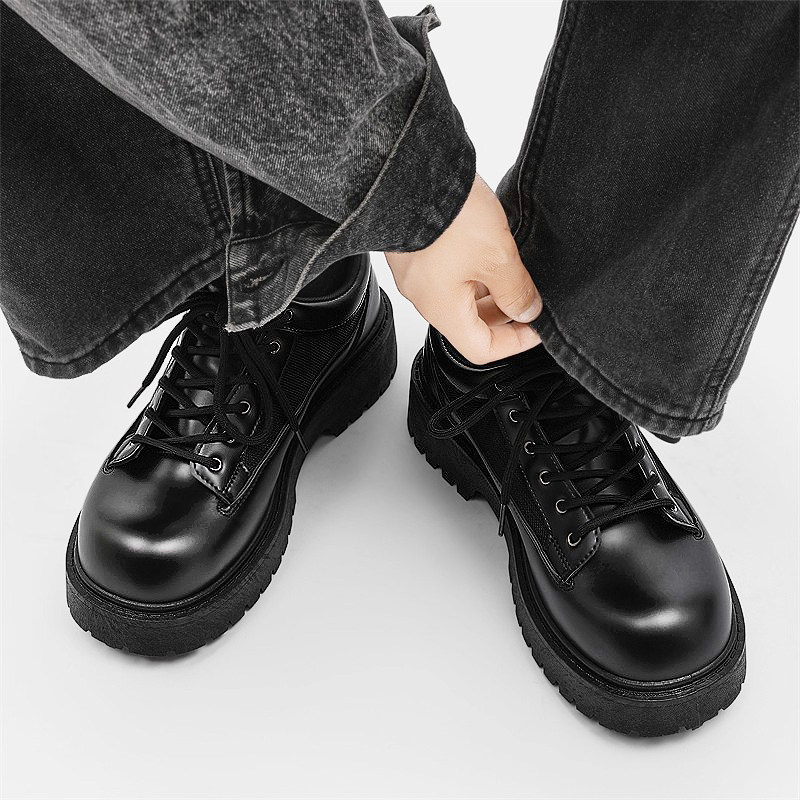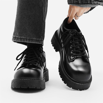 温州皮鞋男鞋春季休闲德比米奇大头脚宽高级感学生增高英伦风软底