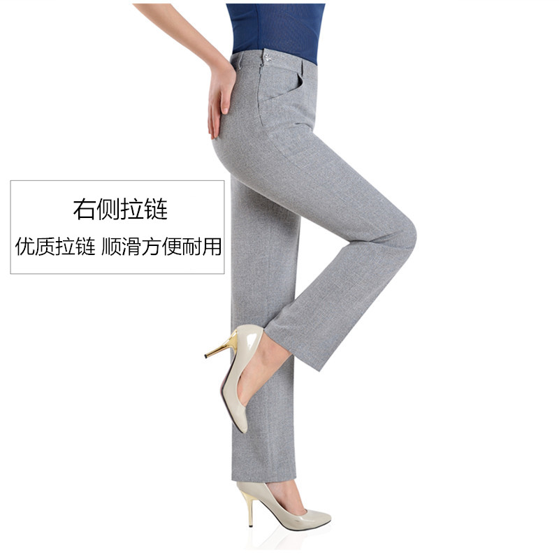 旁开口侧拉链女裤直筒高腰中年大码宽松妈妈裤子棉麻夏季薄款西裤