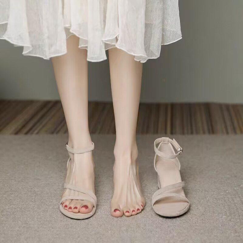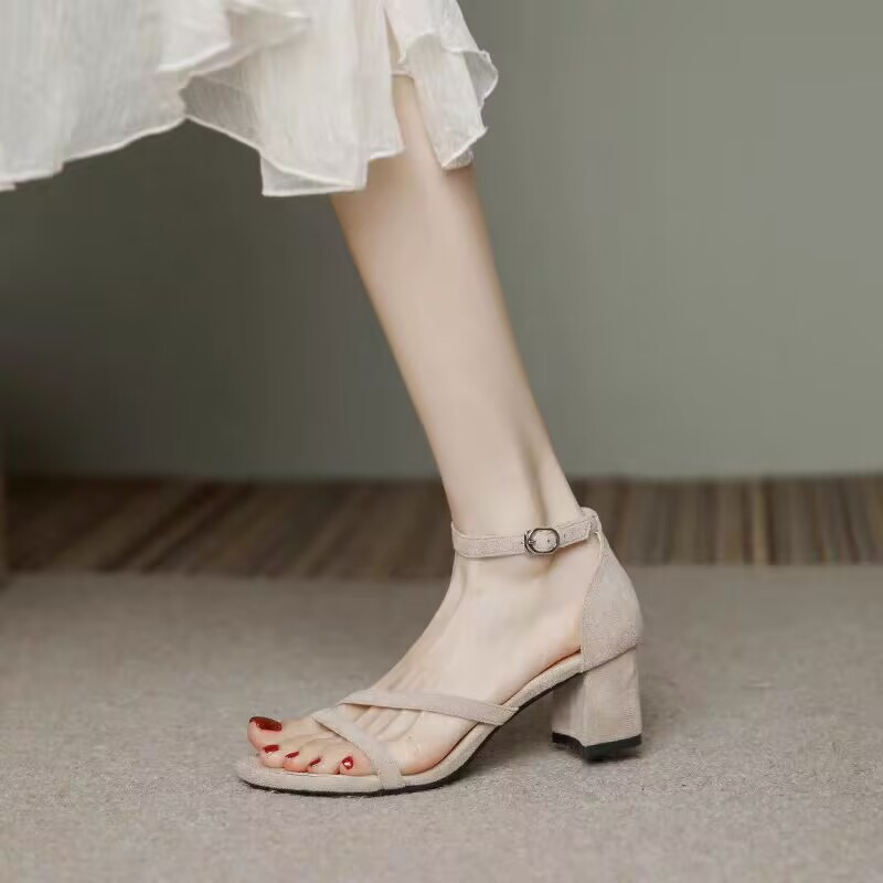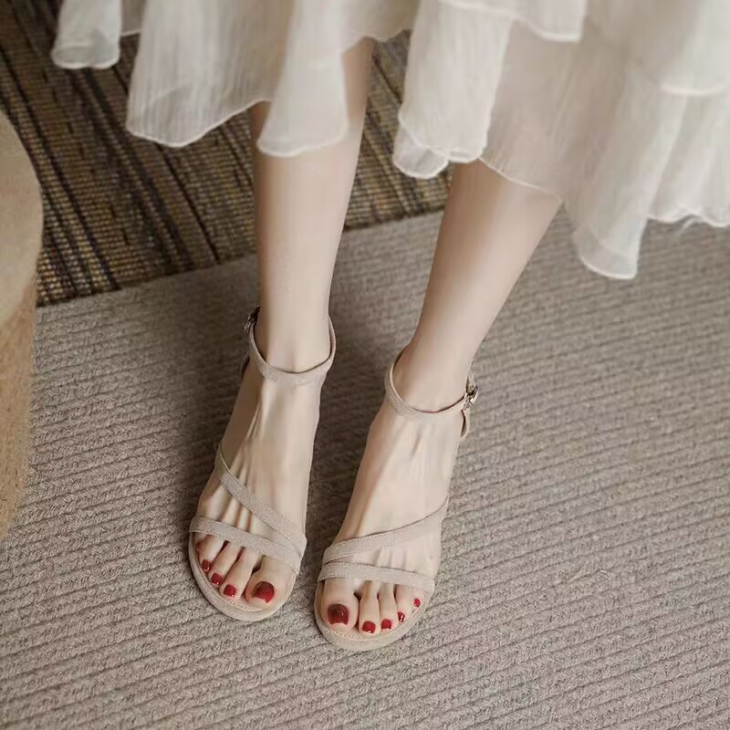 法式仙女风凉鞋女2024夏季新款一字扣带中跟鞋配裙子温柔高跟鞋女