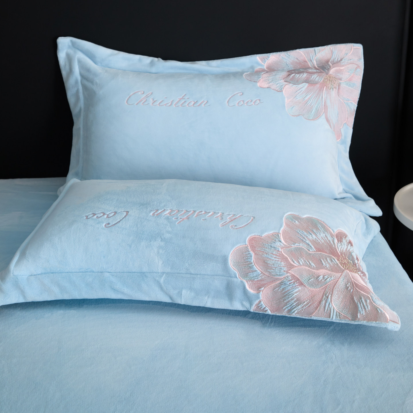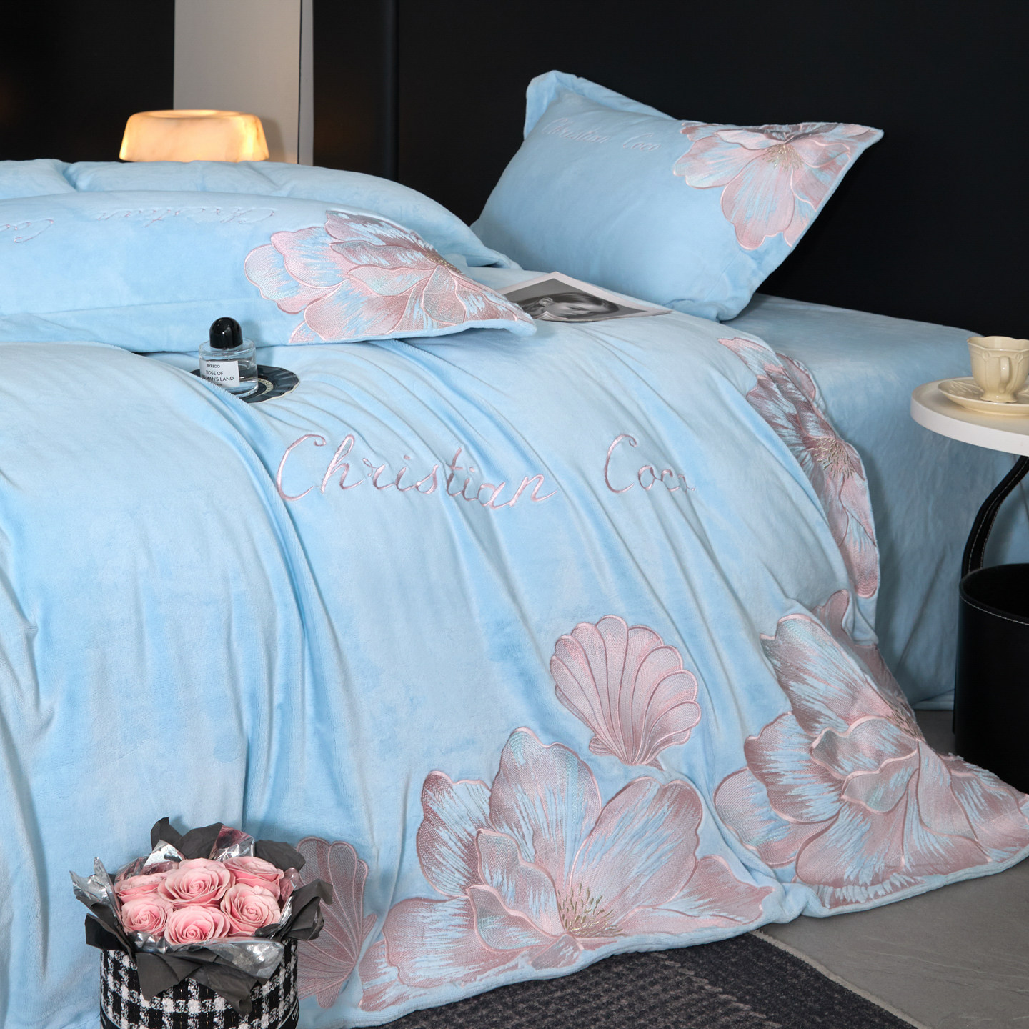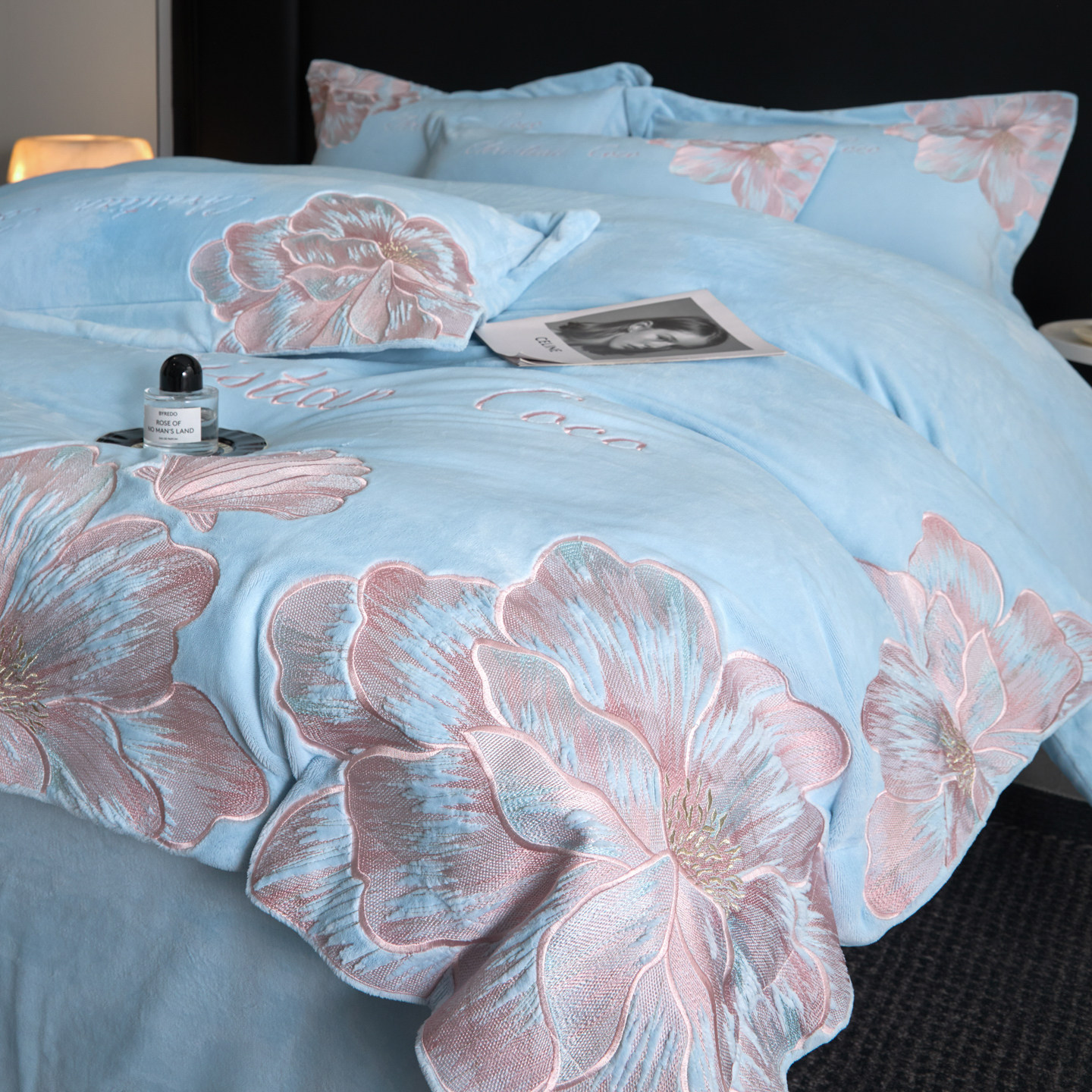 轻奢高级感牛奶绒四件套加厚刺绣被套冬季加绒珊瑚法兰绒床单床品