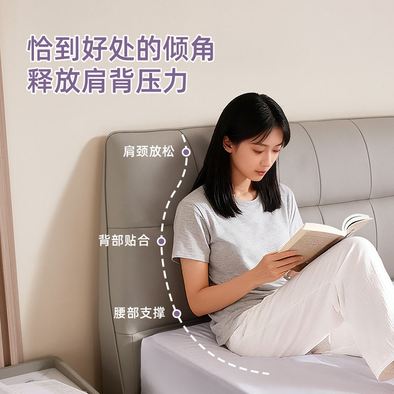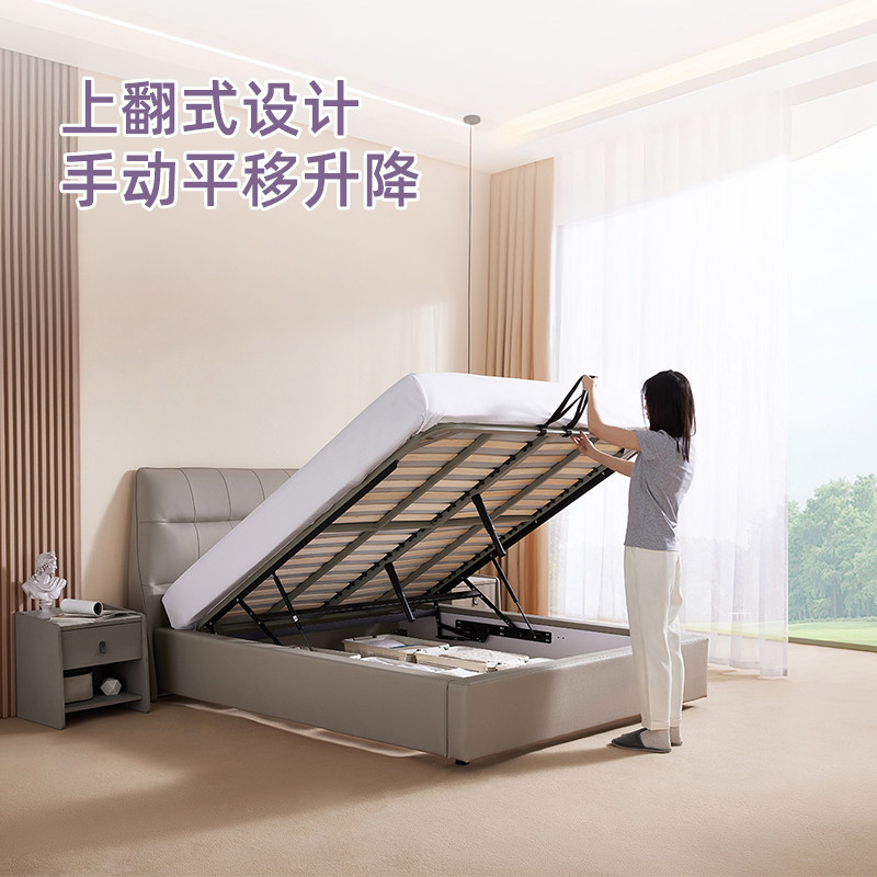 V6家居慕思集团品牌 轻奢主卧真皮床高端大气1.8米高箱储物双人床