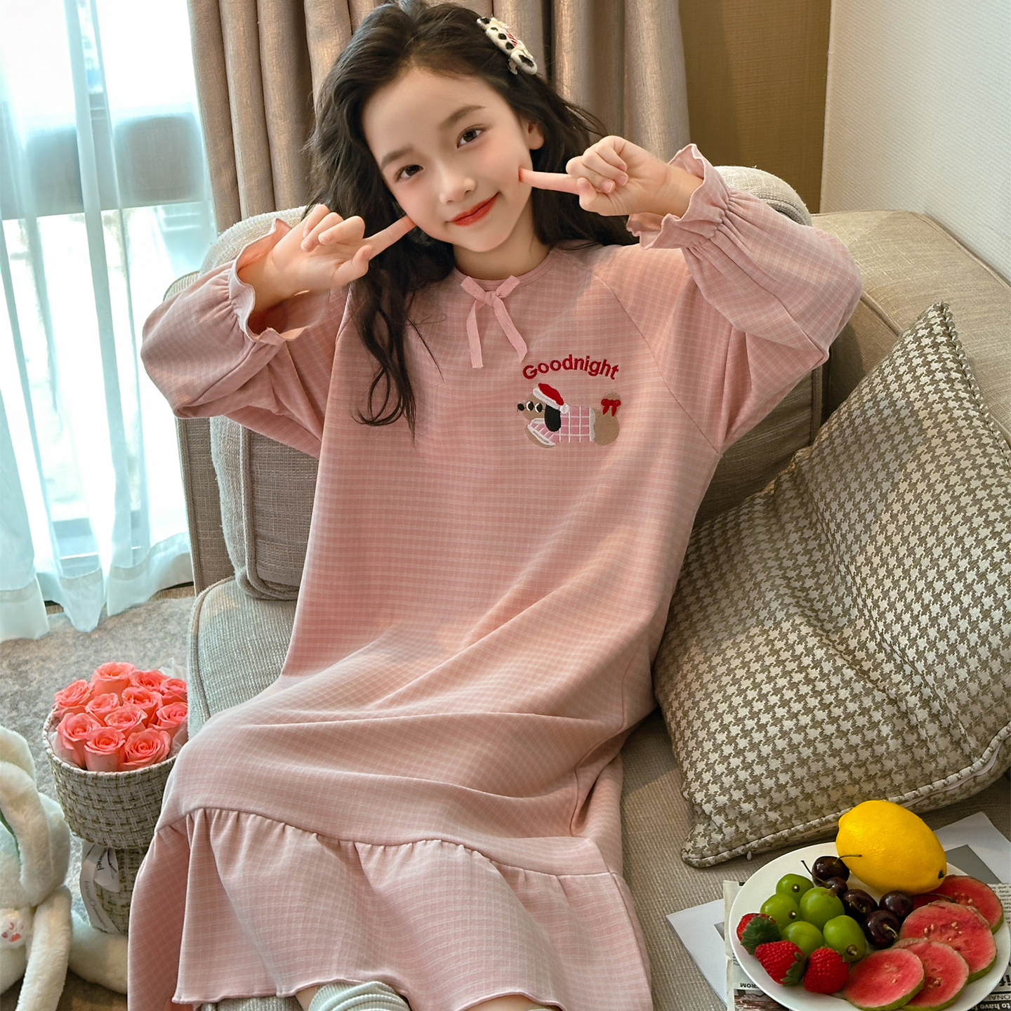 长款秋冬女童保暖睡衣女孩洋气甜美德绒加厚家居裙休闲睡衣长袖裙