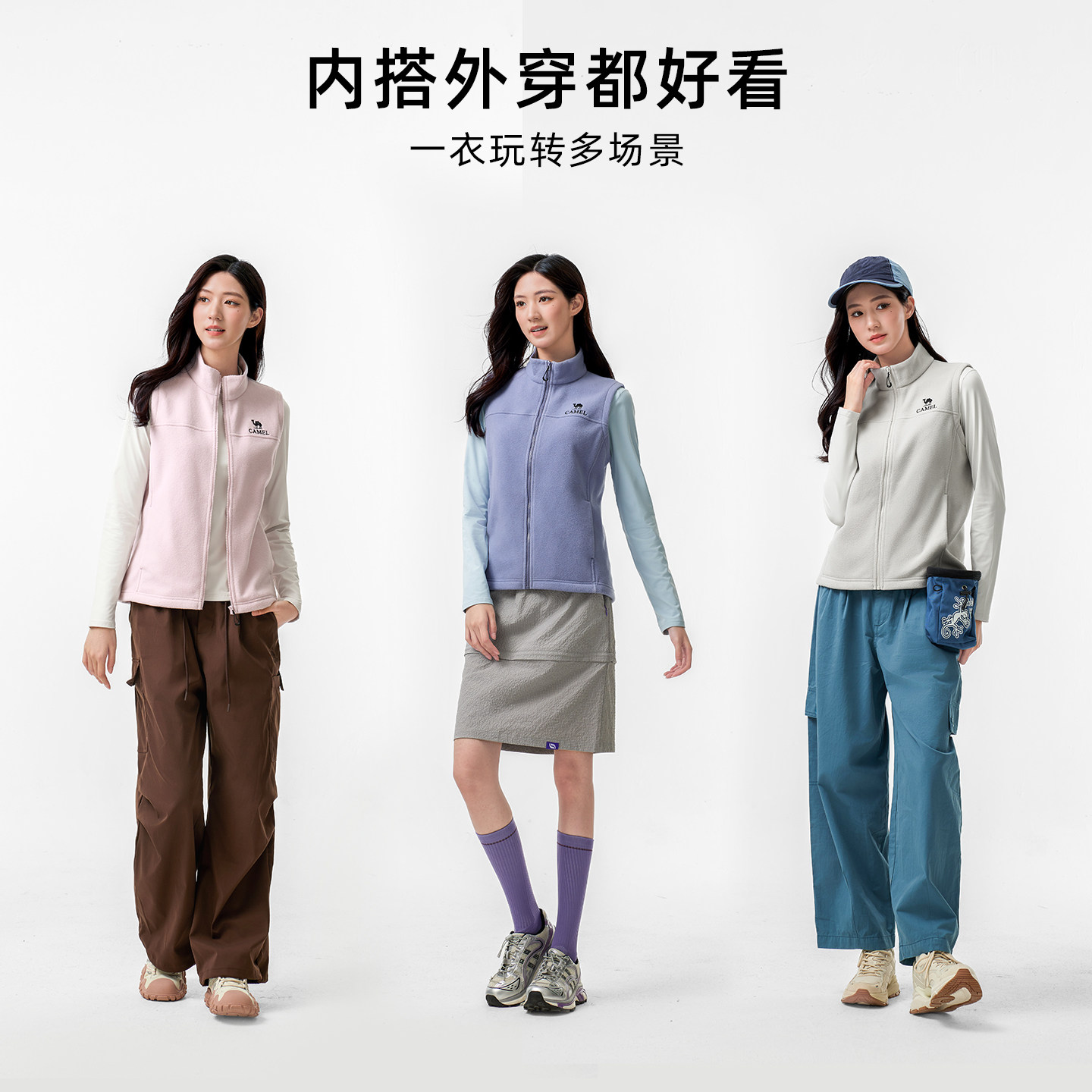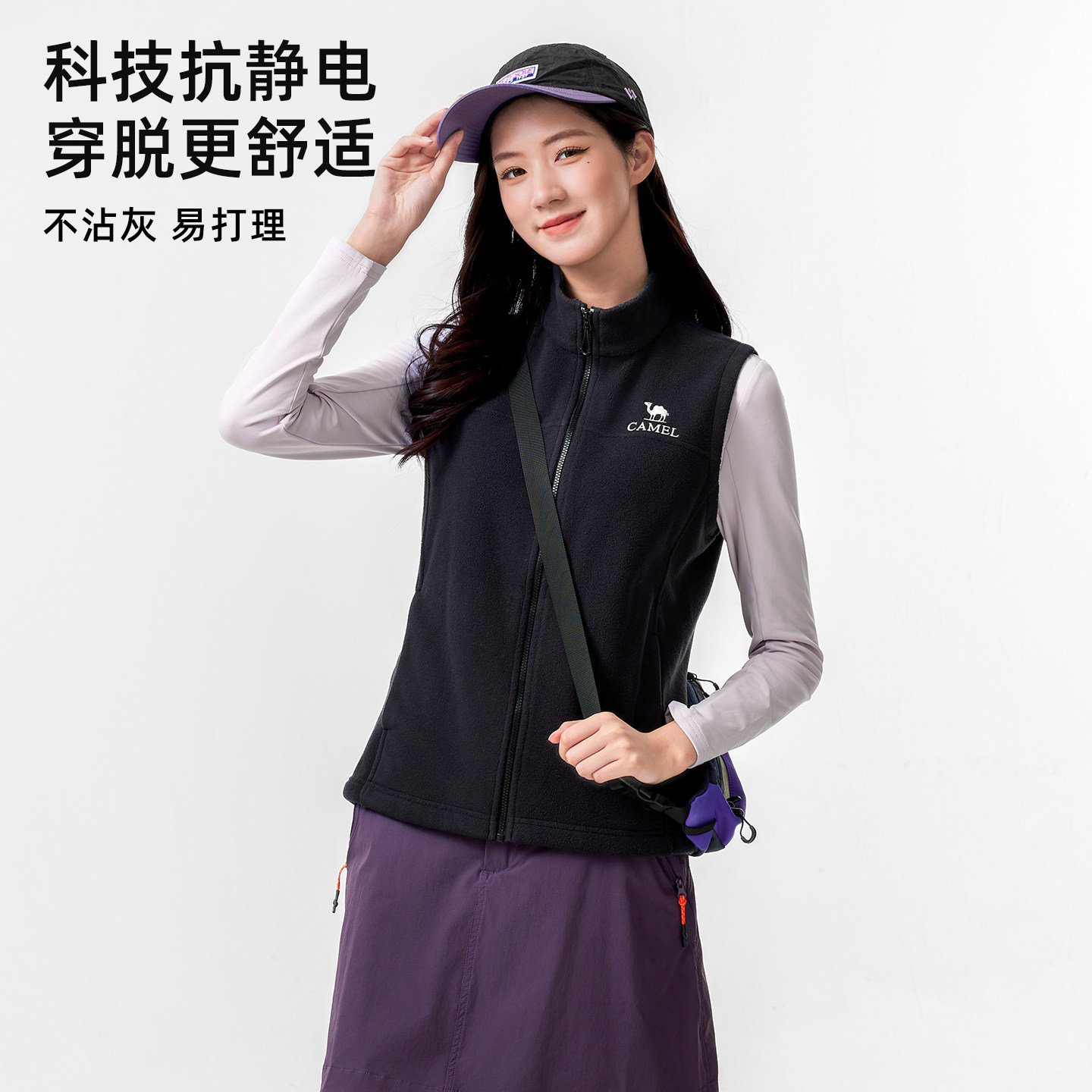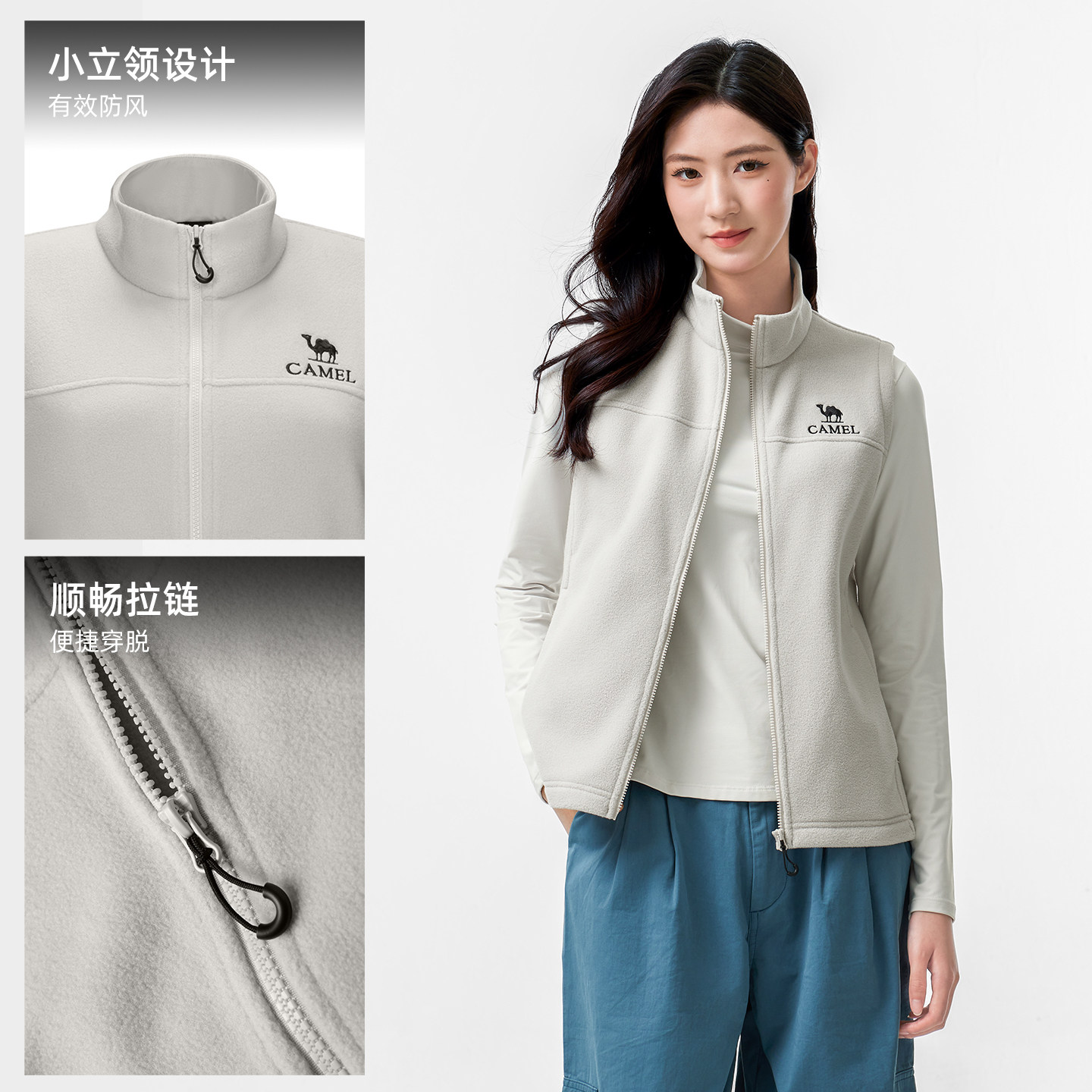 骆驼户外抓绒马甲男立领防风加绒保暖抗静电摇粒绒冲锋衣内胆女