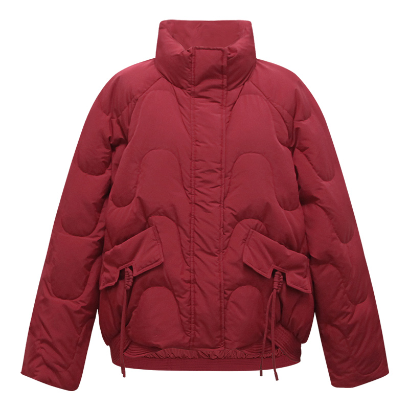 朵以2024冬季新款休闲减龄波浪弧线立领宽松短款羽绒服面包服女