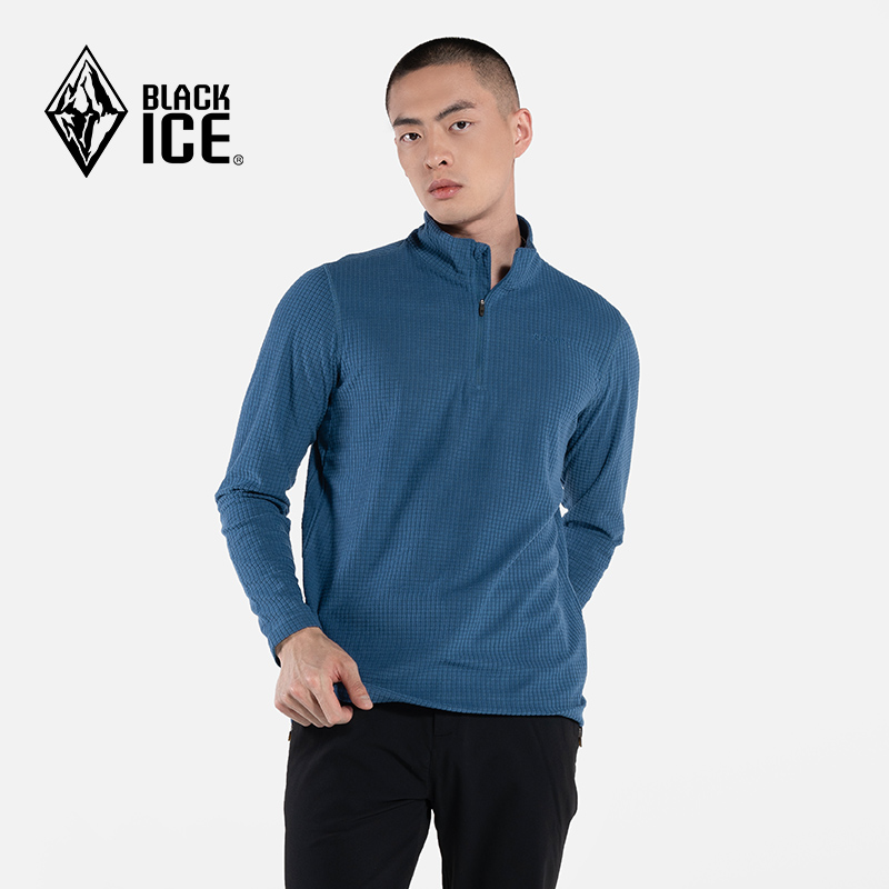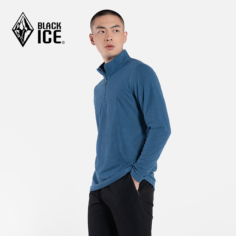 黑冰半拉链抓绒衣男士春秋季户外休闲套头衫徒步露营旅行保暖内搭