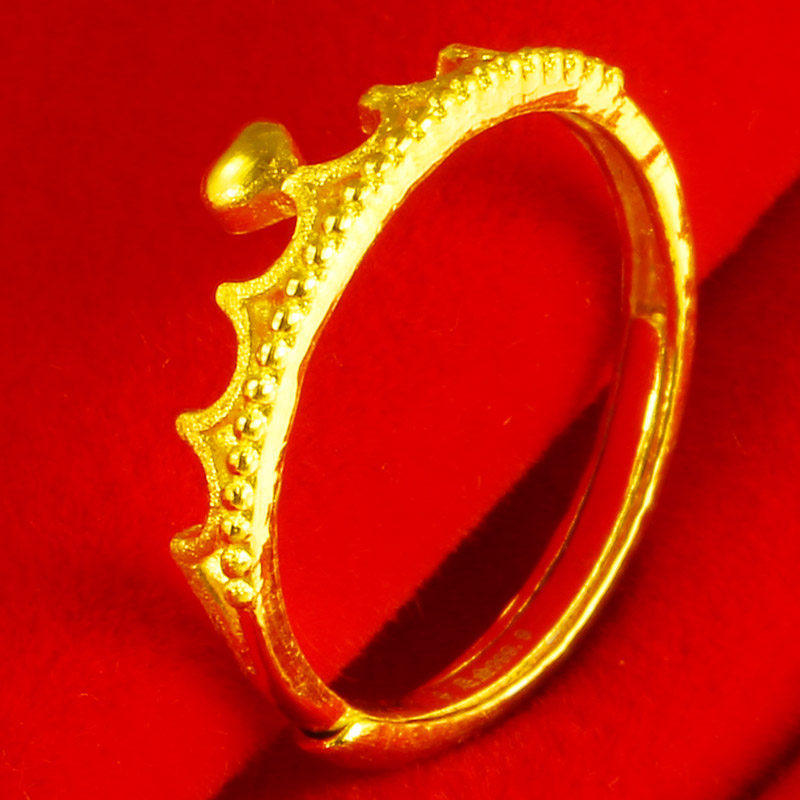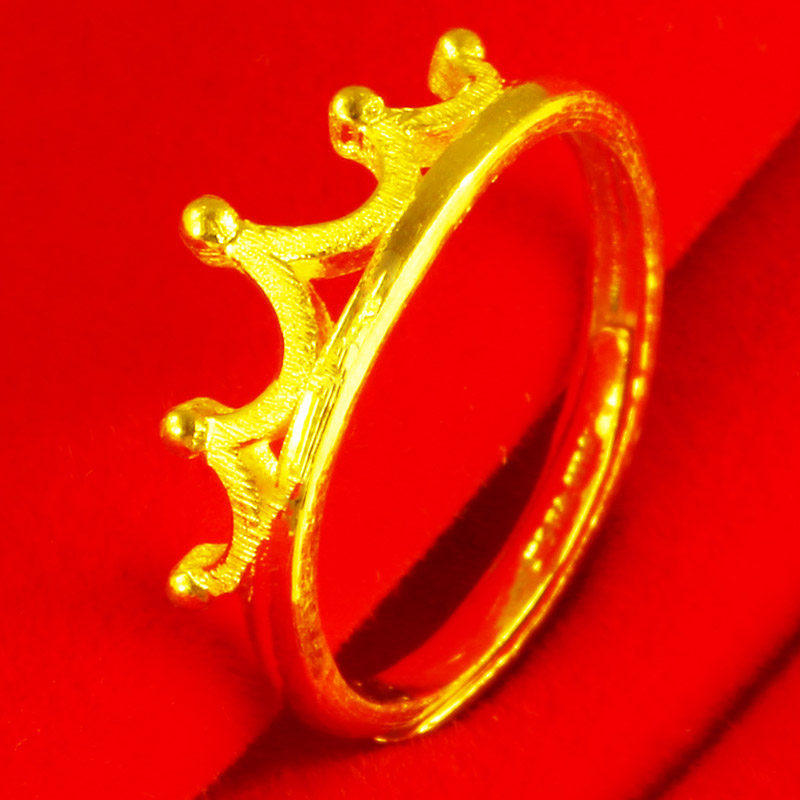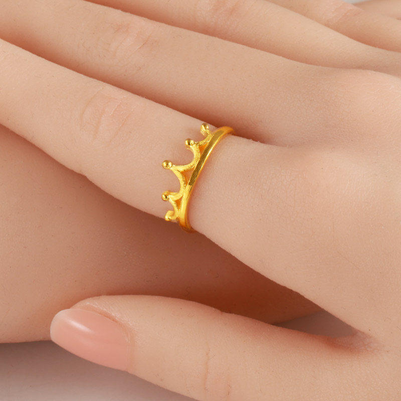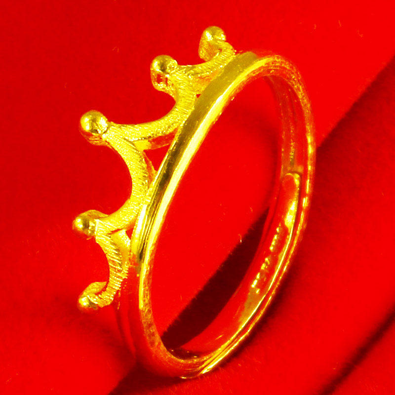 纯黄金戒指女款9999足金真金女王皇冠戒子结婚纯金饰品送女友