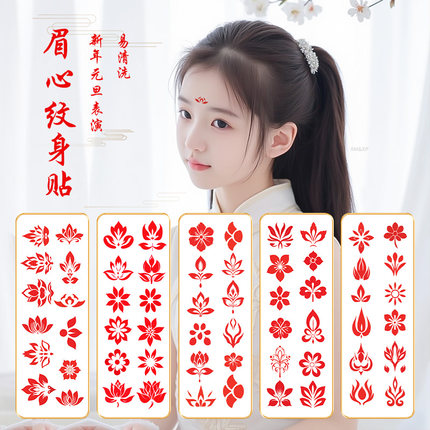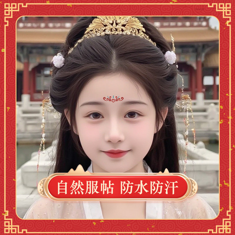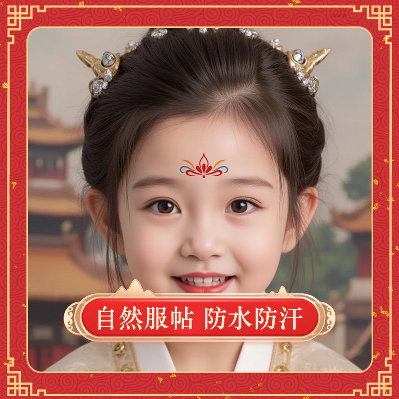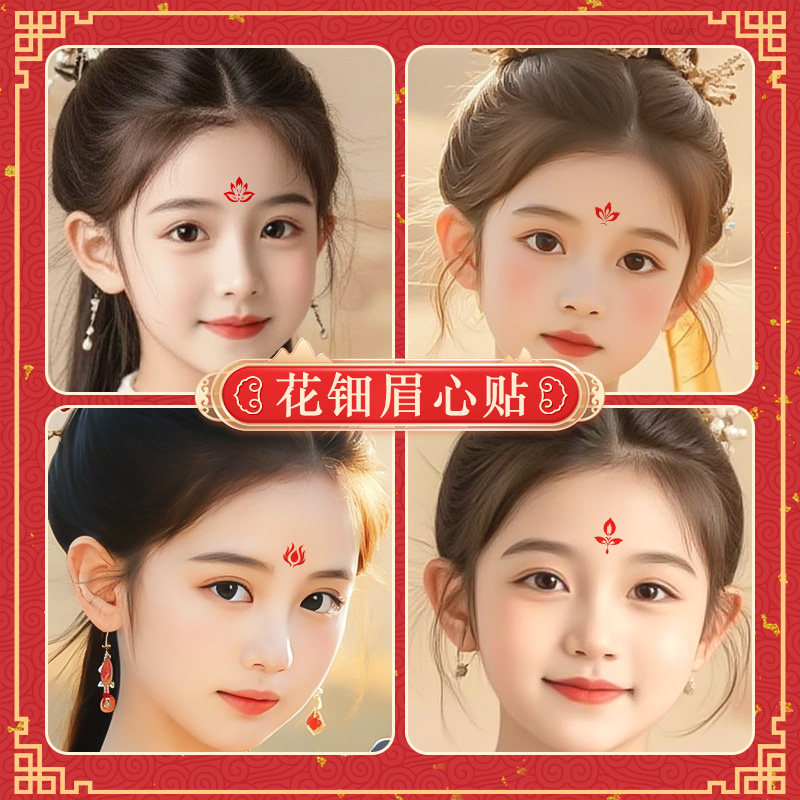 儿童女孩花钿新年红色眉心贴纸新款舞台纹身贴额头古风汉服表演男