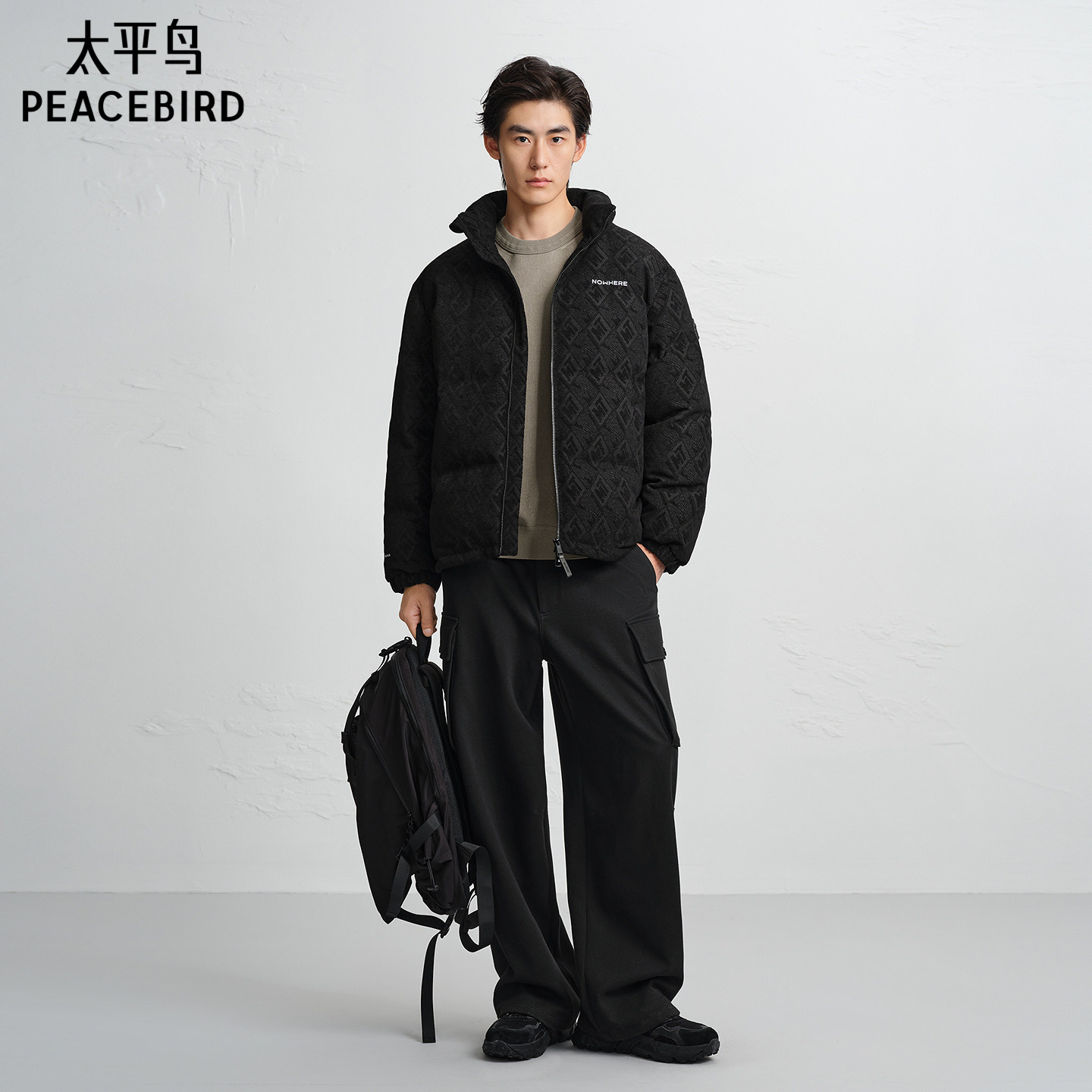 【商场同款】太平鸟男装提花羽绒服冬季新款立领面包服B2ACF4522