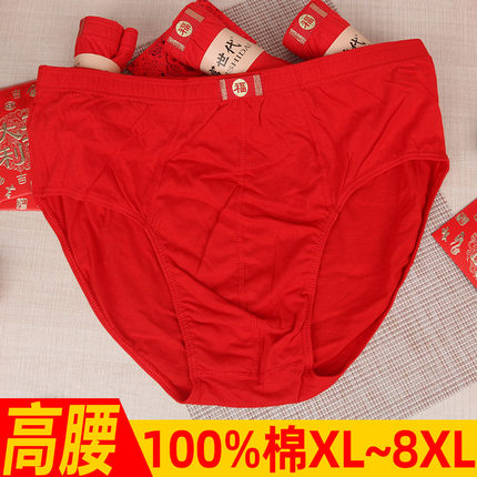 本命年高腰100纯棉男士三角内裤爸爸中老年人肥佬全棉大码大红福