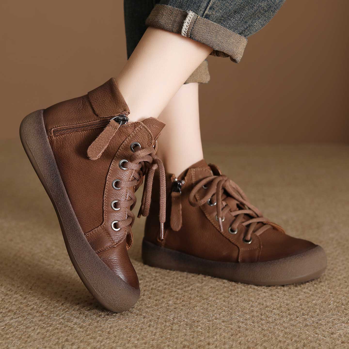 2025秋冬新款真皮英伦风复古马丁靴女鞋子高帮平底软底系带短靴子