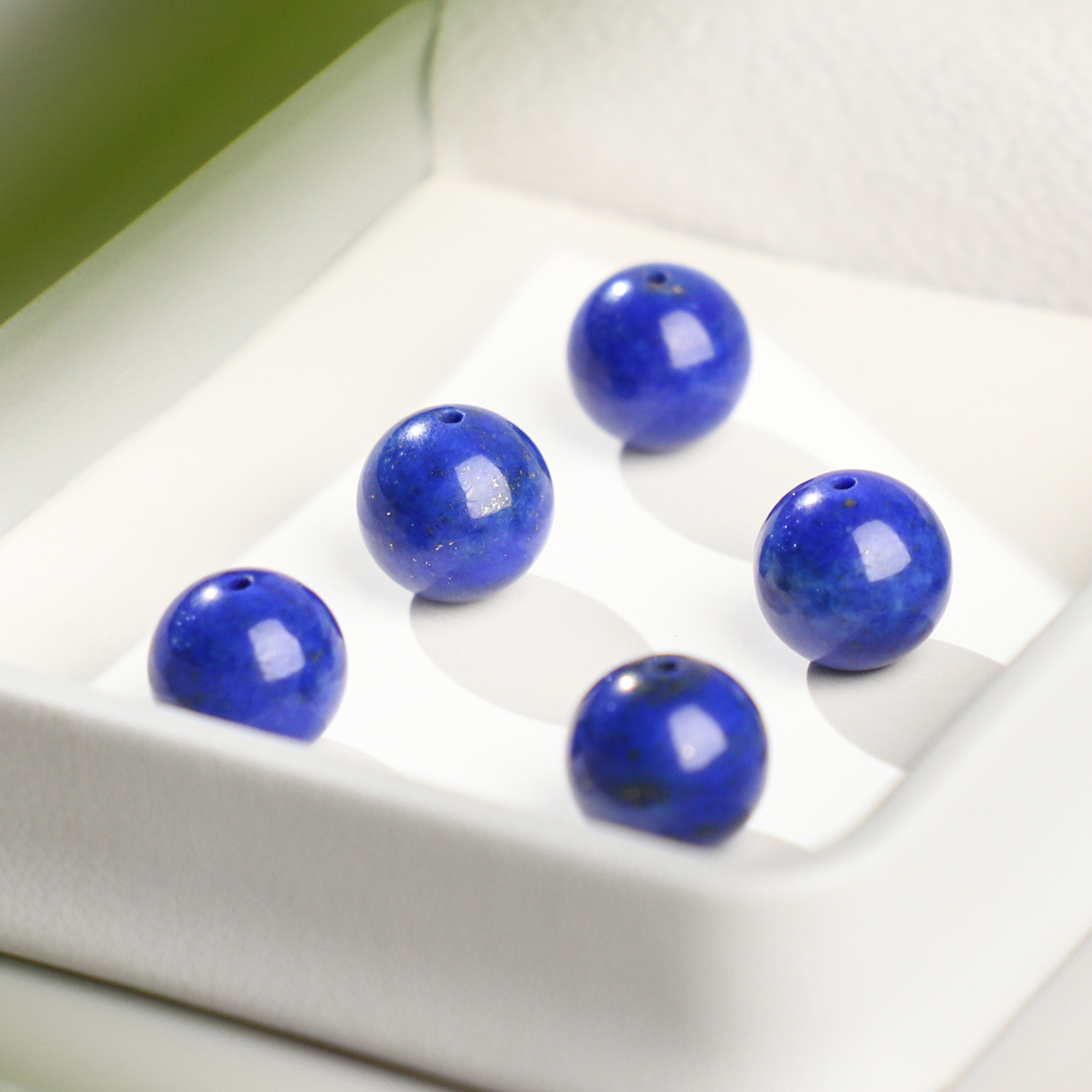 天然原矿青金石圆珠散珠少白少金单珠配饰阿富汗帝王青蓝配珠圆珠