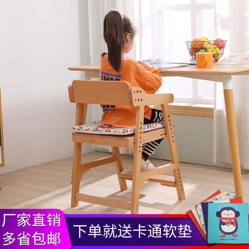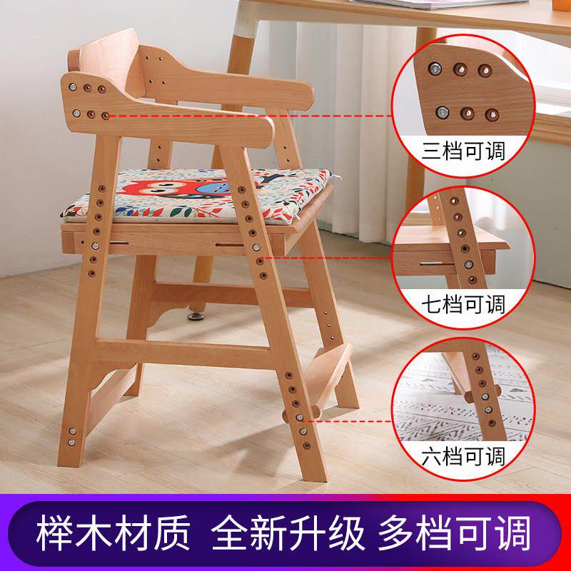 儿童学习椅实木靠背椅学生可升降办公椅调节座椅宝宝餐椅矫姿凳子
