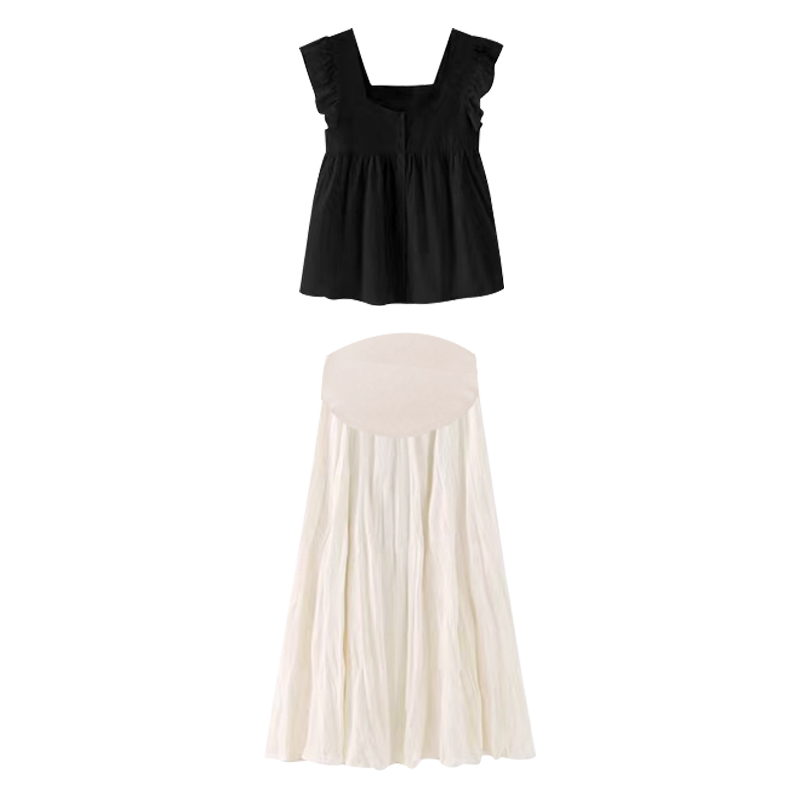 孕妇连衣裙套装时尚洋气时髦夏辣妈黑色无袖宽松上衣半身裙两件套