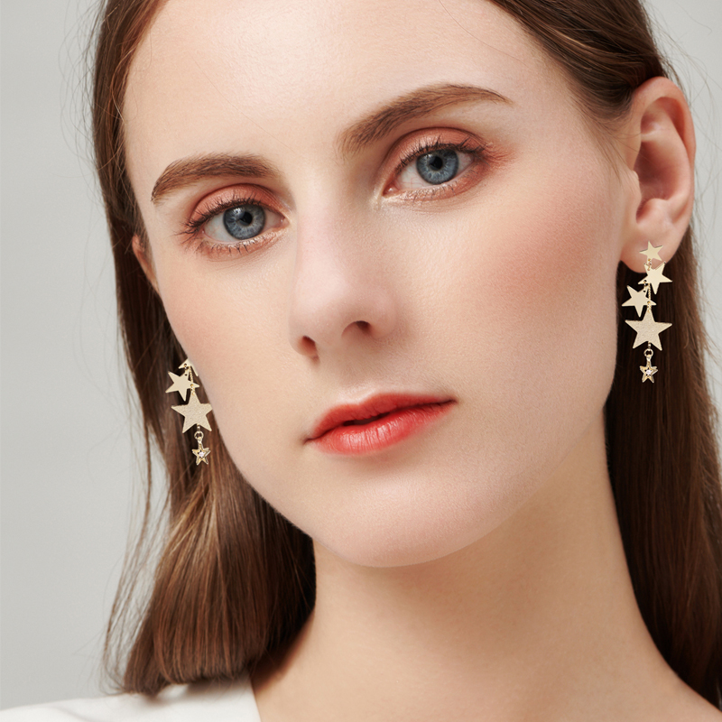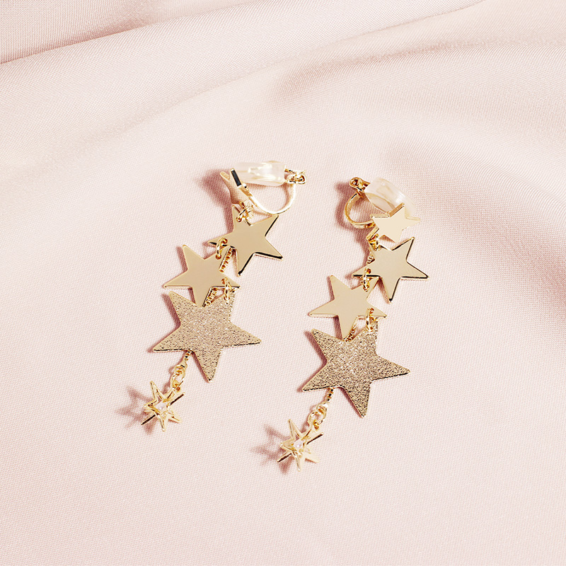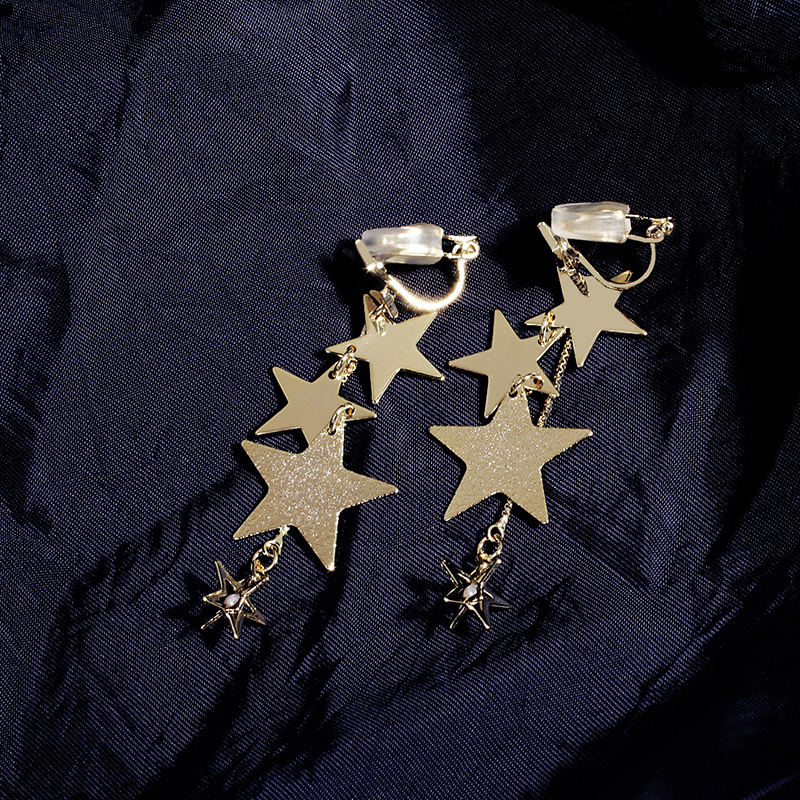 无耳洞耳夹五角星长流苏耳钉无洞耳环耳饰品个性女设计感