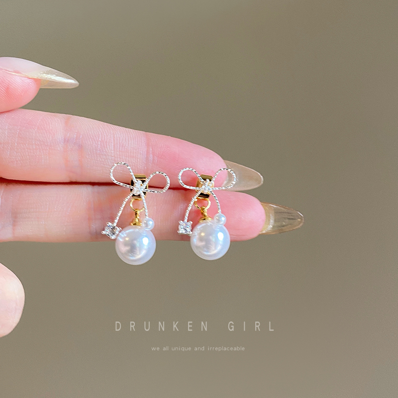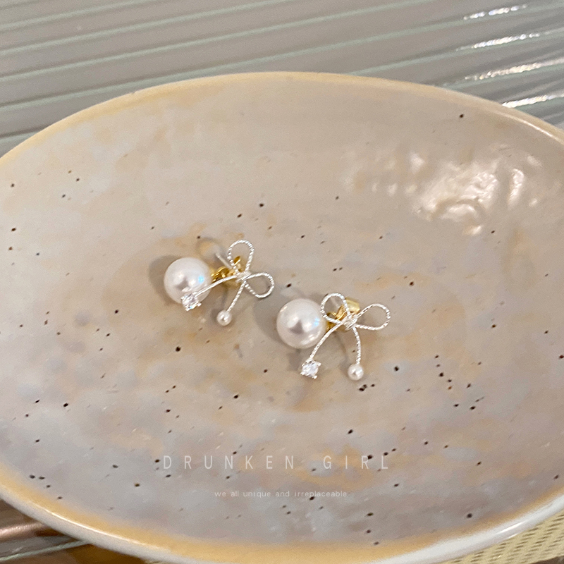 蝴蝶结珍珠耳钉女款轻奢高级感小众耳环2025新款设计感气质耳饰品
