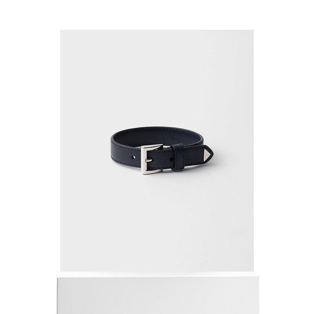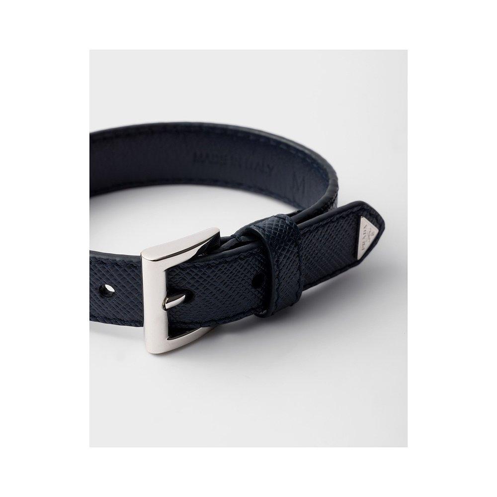 自营欧洲直邮Prada普拉达 Saffiano男士波罗的海蓝皮革三角徽标手