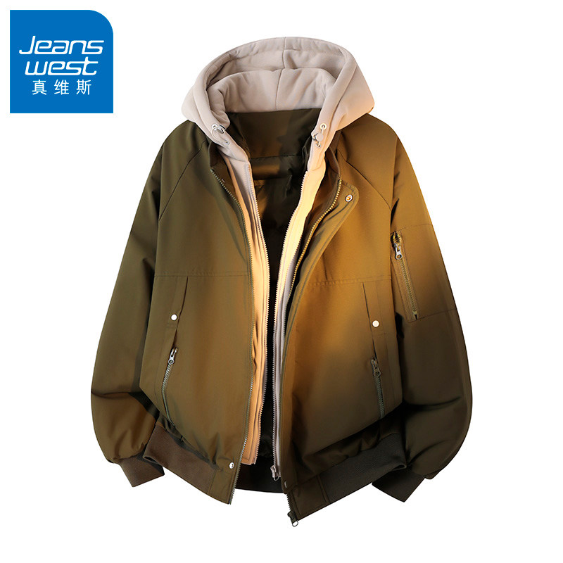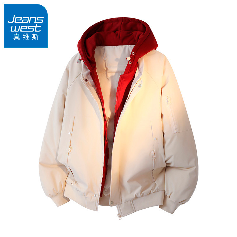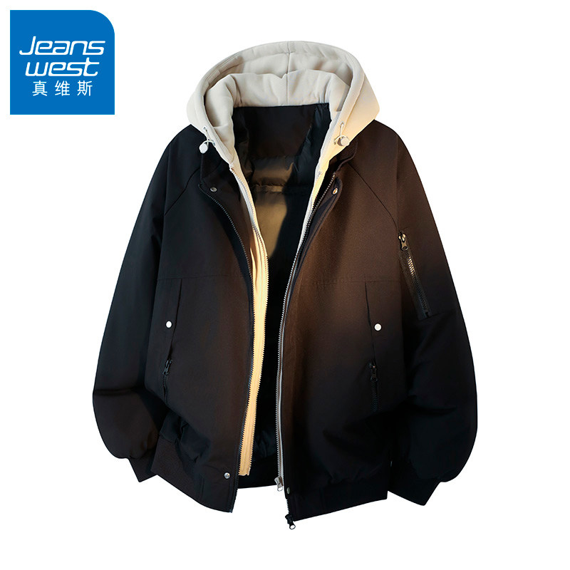 N5真维斯棉服男款2025新款冬季假两件连帽厚棉袄男装棉衣冬装外套