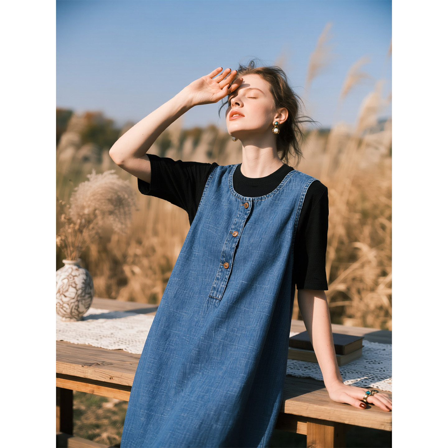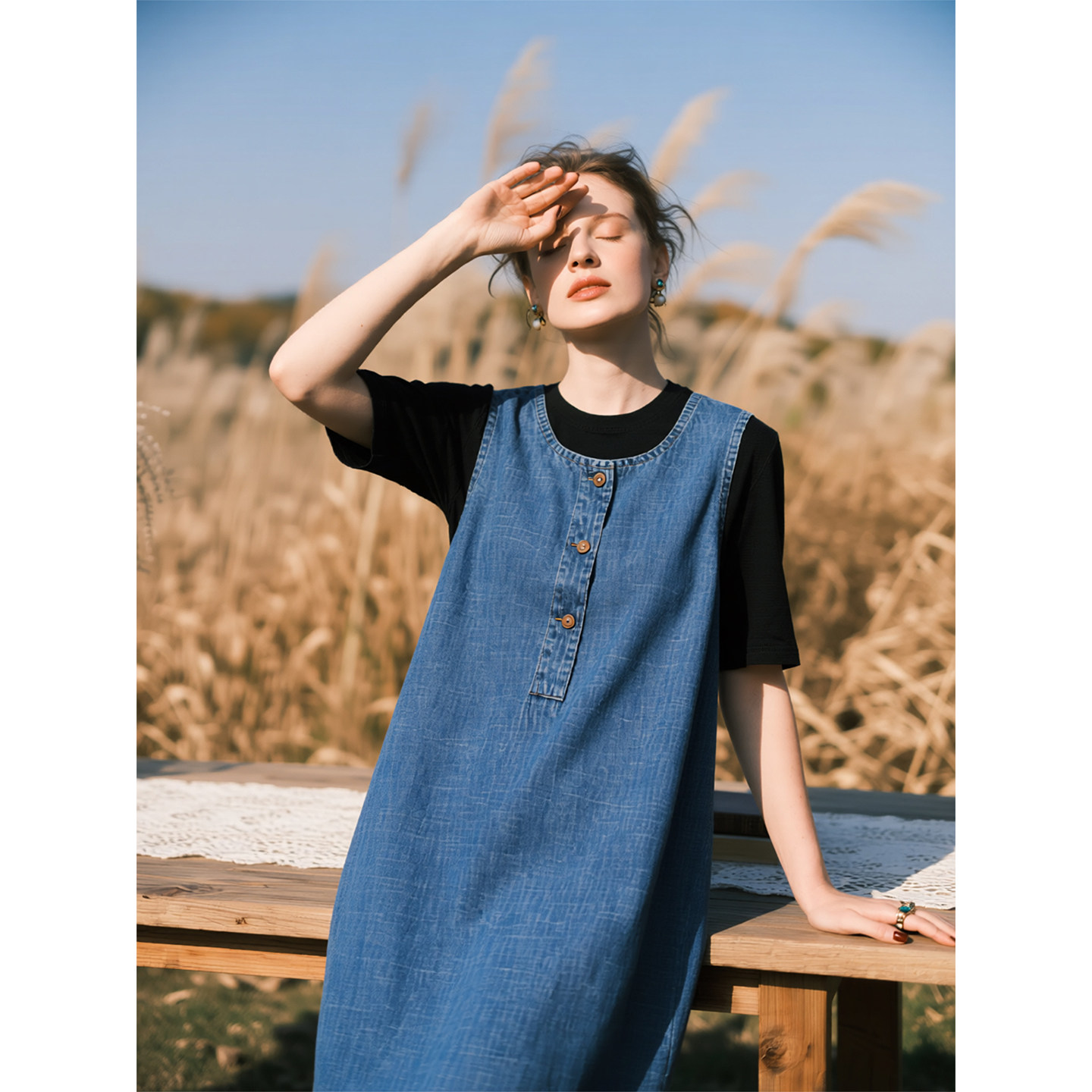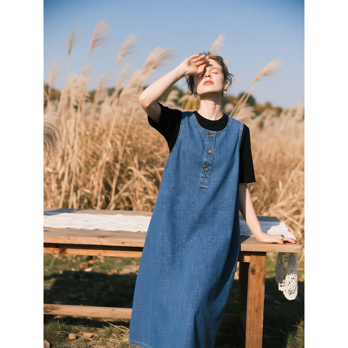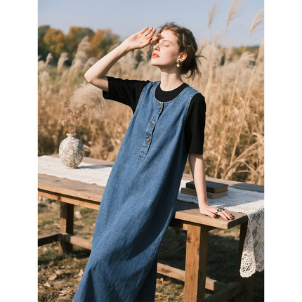 复古蓝色牛仔背心连衣裙女